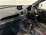 6.5"colour display screen, Audi drive select, Cruise control, Electro-mechanical PAS, Low washer fluid indicator, MMI - Multi Media Interface control system, On board computer, Remote electric boot opening/closing, Service interval indicator, Voice control system, Diesel particulate filter, Sports suspension, Audi music interface, BOSE sound system, DAB digital radio module, Acoustic windscreen, Aluminium window surround, Auto dimming rear view mirror, Black exhaust tailpipes, Black high gloss door mirrors, Black roof rails, Coming home function, Door mirror integrated indicators, Front and rear electric windows, Front fog lights, Front lip spoiler, Heated windscreen washer jets, High Gloss Black Contrast Bumpers, High Gloss Black rear spoiler, LED daytime running lights, LED headlights with headlight washers, LED rear lights, Light and rain sensor for auto activation of lights and windscreen wipers, Loading sill protector in stainless steel, Privacy glass, Rear diffuser with platinum insert, Rear wiper, S Line body styling, Sunband for windscreen, 12V socket in rear centre console, 3 spoke flat bottom multi-function perforated leather steering wheel with contrast stitching, Aluminium door sill trims, Aluminium gear knob, Black cloth headlining, Door sill trim strips, Dual zone climate control, Electric front lumbar adjustment, Front and rear headrests, Front and rear velour floor mats, Front centre armrest with storage compartment and angle adjustment, Front sports seats, Height/reach adjust steering wheel, ISOFIX on front passenger and rear outer seats, Jack and tool kit, Retractable luggage cover, Reversible boot floor, Split fold rear seat, Stainless steel pedals, Storage compartment and 12V socket, Under floor storage in luggage area, Audi Exclusive black styling pack - Q3, LED interior light pack - Q3, 3x3 point rear seatbelts, ABS+Electronic Brake force Distribution, Curtain airbags, Driver and passenger airbags, Driver and passenger side airbags, EDL + ASR, Electrically operated child locks on rear doors, Electromechanical parking brake, ESP, First aid kit, Front passenger airbag deactivation, Head airbags, Seatbelt warning light, Tyre pressure monitoring system, Warning triangle, Locking wheel bolts, Remote central locking, Thatcham category 1 alarm + immobiliser, Piano black finish inlay,