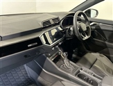 Audi connect safety and service, Audi drive select, Audi lane departure warning, Audi smartphone interface includes wireless Apple carplay/Android Auto, Audi Virtual Cockpit - 10.25"display, Bluetooth interface, Camera based traffic sign recognition, Distraction and Fatigue warning, Legal emergency call, MMI Navigation Plus with high resolution 10.1 inch touchscreen colour display, Power operated tailgate, Progressive steering, Service interval indicator, Start stop system with recuperation, Voice control system with natural language interaction, Sports suspension, 2 USB-C ports with charge and data functions, 6 passive loudspeakers, DAB digital radio module, Acoustic windscreen, Audi Beam uses LEDs to project the Audi logo onto the ground as you exit your Q3, Auto dimming door mirrors, Auto dimming frameless rear view mirror, Diffuser grille in grained matt black, Diffuser trim in selenite silver, Electrically folding, adjustable and heated door mirrors with integrated LED side indicators and kerb view function for passenger side, Front and rear electric windows, Front fog lights, Front underbody protection in manhattan grey paint finish, High gloss black finish B and C pillars, LED Dynamic rear indicators, LED headlights with LED daytime running lights, LED rear lights, LED third brake light, Privacy glass dark tinted rear and rear-side windows (from B-pillar backwards), Rain and light sensors, Rear side wing doors, Rear underbody protection in matt black, Rear wiper, S line front and rear bumpers and side skirts in contrasting Manhattan grey paint finish, Variable front intermittent wipers, 12V socket in rear centre console, 3 seat bench in 2nd row, 40:20:40 folding with manual adjustment for 60:40 forwards/backwards position and backrest angle, Adjustable rear seat bench/backrest with centre armrest and cupholder, Black cloth headlining, Dual zone electronic climate control, Electric lumbar support, Front and rear black floor mats with contrast stitching, Front and rear headrests, Front centre armrest, Height and reach adjustable steering wheel, Illuminated door sill trims with S logo, ISOFIX child seat mounting for front passenger with airbag deactivation and outer rear seat including top tether attachment point for outer rear seats, Luggage compartment sill protection in stainless steel, Manual front seats with height adjustment, Perforated leather gearknob, Single front passenger seat, Stainless steel pedals, Twin leather upholstery with front sport seats + S embossing, Black styling pack - Q3, Non smoking pack - Q3, 3x3 point rear seatbelts, 6 airbags - Driver, front passenger, curtain and side windows, Audi pre-sense front with pedestrain and cyclist recognition, Electrically operated child locks on rear doors, Electromechanical parking brake, Electronic stabilisation control including ABS, ASR and EDL, Front seatbelt reminder, Hill descent control, Hill hold assist, Pre sense basic, Seatbelt monitoring, Tyre pressure warning, Warning triangle and first aid kit, Anti theft alarm, Anti theft wheel bolts, Immobiliser, Remote central locking, Aluminium look interior elements, Detail dashboard around MMI touch colour display in glass look, black with surround in aluminium look, Leatherette door armrest, Piano black inlay,