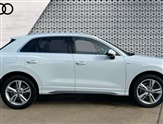Audi connect safety and service (e-call), Audi drive select, Audi lane departure warning, Audi side assist, Audi smartphone interface, Audi Virtual Cockpit - 10.25"display, Bluetooth interface, Camera based traffic sign recognition, MMI navigation plus with MMI touch, Power opening/closing tailgate, Progressive steering, Rear parking sensors, Service interval indicator, Stop/start system, Voice control system, Sports suspension, 1 x USB type C and 1 USB type A charging points, 6 speakers, DAB digital radio module, Acoustic windscreen, Aluminium roof rails, Aluminium window trim, Auto dimming rear view mirror, Body coloured bumpers, Diffuser in matt Platinum grey, Electrically adjustable and heated door mirrors with integrated LED side indicators, Front and rear electric windows, Front fog lights, Front side air inlets in matt platinum grey, Front spoiler blade in matt platinum grey, Grille vertical bars in aluminium silver/Matt, High gloss black finish B and C pillars, LED headlights with LED daytime running lights and dynamic rear indicator, LED rear lights, Privacy glass, Rain and light sensors, Rear diffuser strip in matt titanium black, S Line badge on wings, S Line front and rear bumpers, Side skirt insert in matt Platinium grey, Titanium black radiator grille, 12V socket in rear centre console, 40:20:40 split folding rear bench seat, Adjustable rear seat bench/backrest with centre armrest and cupholder, Aluminium door sill trims, Black cloth headlining, Dual zone climate control, Front and rear black floor mats with contrast stitching in rock grey, Front and rear headrests, Front and rear roof module including reading lights, Front centre armrest with storage compartment and angle adjustment, Glove compartment lighting, Height and reach adjustable steering wheel, Illuminated door sill trims with S logo, ISOFIX child seat mounting and Top Tether with front passenger airbag deactivation, Luggage compartment light, Manual front seats with height adjustment, Perforated leather gearknob, Stainless steel luggage compartment sill finisher, Stainless steel pedals, Non smoking pack - Q3, 3x3 point rear seatbelts, 6 airbags - Driver, front passenger, curtain and side windows, Audi pre-sense front with pedestrain and cyclist recognition, Electrically operated child locks on rear doors, Electromechanical parking brake, Electronic stabilisation control including ABS, ASR and EDL, Hill descent control, Hill hold assist, Pre sense basic, Seatbelt monitoring, Tyre pressure warning, Warning triangle and first aid kit, Anti theft alarm, Anti theft wheel bolts, Remote central locking, Dark matt brushed aluminium inlay, MMI touch colour display in gloss black with aluminium surround,
