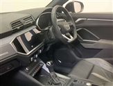 Dark matt brushed aluminium inlay, MMI touch colour display in gloss black with aluminium surround, Black styling pack - Q3, Driver Assistance Pack - Q3, Multi coloured extended ambient interior lighting pack - Q3, Non smoking pack - Q3, Advanced key, Anti theft alarm, Anti theft wheel bolts, Audi pre-sense front with pedestrain and cyclist recognition, Remote central locking, 1 x USB type C and 1 USB type A charging points, Bang & Olufsen 3D Premium Sound System, DAB digital radio module, 3x3 point rear seatbelts, 6 airbags - Driver, front passenger, curtain and side windows, Electrically operated child locks on rear doors, Electromechanical parking brake, Electronic stabilisation control including ABS, ASR and EDL, Hill descent control, Hill hold assist, Pre sense basic, Seatbelt monitoring, Tyre pressure warning, Warning triangle and first aid kit, Acoustic windscreen, Audi Beam uses LEDs to project the Audi Sport logo, Auto dimming and folding door mirrors, Auto dimming rear view mirror, Black roof rails, Contrast bumpers in Manhattan grey paint finish, Diffuser in matt Platinum grey, Electrically adjustable and heated door mirrors with integrated LED side indicators, Front and rear electric windows, Front fog lights, Front spoiler blade in matt platinum grey, Headlight washers, High gloss black finish B and C pillars, Matrix LED headlights with LED rear lights and dynamic front and rear indicator, Panoramic opening glass sunroof, Privacy glass, Rain and light sensors, Rear diffuser strip in matt titanium black, S line bumpers in contrasting Manhattan grey, 12V socket in rear centre console, 3 spoke flat bottomed high multi-function leather sport steering wheel with gearshift paddles, 4 way electric lumbar support for driver and front passenger, 40:20:40 split folding rear bench seat, Adjustable rear seat bench/backrest with centre armrest and cupholder, Aluminium door sill trims, Black cloth headlining, Dual zone climate control, Electrically adjustable front seats, Front and rear black floor mats with contrast stitching in rock grey, Front and rear headrests, Front and rear roof module including reading lights, Front centre armrest with storage compartment and angle adjustment, Glove compartment lighting, Heated front seats, Height and reach adjustable steering wheel, ISOFIX child seat mounting and Top Tether with front passenger airbag deactivation, Luggage compartment light, Perforated leather gearknob, Stainless steel luggage compartment sill finisher, Stainless steel pedals, 360 degree parking camera, Audi connect safety and service (e-call), Audi drive select, Audi lane departure warning, Audi phone box with wireless charging, Audi side assist, Audi smartphone interface, Audi virtual cockpit plus, Bluetooth interface, MMI navigation plus with MMI touch, Power opening/closing tailgate, Progressive steering, Rear cross traffic alert, Service interval indicator, Stop/start system, Voice control system, Adaptive suspension with damping control, Diesel particulate filter,