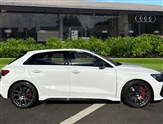 Adjustable speed limiter, Audi drive select comfort, auto, dynamic and efficiency, Audi smartphone interface with app store includes wireless Apple carplay, Android auto and Amazon alexa integration, Audi virtual cockpit plus with RS specific design and 12.3"display with additional graphic display options, Automatic start/stop system with recuperation, Bluetooth interface, Camera based traffic sign recognition, Collision avoidance assistant, Distraction and Fatigue warning, e-Call (emergency call), Lane departure warning system, MMI Navigation Plus with high resolution 10.1"colour touch screen display, Park Assist with parking system Plus, Progressive steering, RS specific driving modes - RS Individual, RS Performance and RS Torque rear, Voice control system with natural language interaction, Quattro permanent four wheel drive, Audi Phonebox light with wireless charging, DAB Digital radio, USB ports with charging function in the rear, All weather light, Audi beam LED projection of RS logo on ground as you exit, Audi darkened matrix LED headlights with dynamic light sequencing and dynamic indicator, Auto dimming frameless rear view mirror, Automatic dynamic range control, Carbon door mirror housings, Carbon fibre engine cover, Dipped beam, main beam, position light and turning light, Dynamic RS specific light sequencing of the coming home and leaving home function, Electrically adjustable/heated/folding/auto dimming door mirrors with integrated LED indications + kerb view function for passenger side, Exterior model badging, Front electric windows, Headlight cleaning system, Heat insulating glass windscreen, Intersection light, LED 3rd brake light, LED brake lights, LED daytime running x3, LED rear lights with dynamic light sequencing and dynamic indicator, LED rear number plate lights, LED reverse light, LED tail lights, Light and rain sensors, Manoeuvring light, Motorway light, Privacy glass - dark tinted rear window, rear door and side windows, Rear electric windows, Rear side wing doors, Rear wiper, Roof edge spoiler in carbon, RS dual branch exhaust system with two chrome plated oval tailpipe trims, Static Cornering lights, Visually upgraded RS specific daytime running light choice of 4 digital signature in chequered flag design within the headlight, 12V socket and storage compartment in front centre console, 3 seat bench in 2nd row, 3 Spoke flat top and bottomed black leather multi function steering and gear shift paddles, 3-zone deluxe automatic air conditioning, 40/20/40 split folding rear seat bench, Black cloth headlining, Front and rear headrests, Front centre armrest, Front door sill trims with RS 3 logo, Front sports seats RS embossed logo, Front/rear floor mats, Heated front seats, Height and reach adjustable steering wheel, Manual boot compartment lid, Manually adjustable front seats, Rear centre armrest with cupholder, Seat side bolsters, Single front passenger seat, Stainless steel pedals and front footrest in black, Vanadium look - Interior door handles,Door trim,power latching,Air vents,window controls,mirror adjust,rear door lock,Selector lever in centre console, Black Styling plus package - RS3, Extended ambient lighting package Pro with Multi-coloured contour lighting of instrument panel - RS3, RS exterior features pack in carbon and gloss black - RS3, RS sport suspension pack - RS3, Storage package - RS3 Sportback, Technology package without speed limiter - RS3, 3x3 point rear seat belts, Driver and front passenger airbag with passenger airbag deactivation, Electronic Stabilisation Control (ESC) including ABS, ASR and EDL, First aid kit with warning triangle and 2 safety vests, Hill hold assist, Pre-sense front with pedestrian and cyclist detection, RS steel brakes, Seatbelt monitoring, Tyre pressure loss indicator, Anti theft alarm, Anti-theft wheel bolts, Electronically operated child locks, Remote central locking with safelock, Inlays in carbon atlas structure, 19"10 cross spoke silk matt grey alloy wh