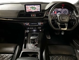 Audi connect, Audi drive select, Audi smartphone interface, Driver information centre with colour display in instrument panel, MMI Navigation plus, Power tailgate, Remote electric boot opening/closing, Service interval indicator, Voice control system, 2 USB ports, 2x SD card slot, Audi sound system, Auxiliary input socket, CD player, DAB Digital radio, MMI radio plus with 7"colour MMI screen and MMI controller, Acoustic windscreen, Aluminium roof rails, Aluminium sill plates, Auto dimming rear view mirror, Black high gloss front air inlet in matt aluminium effect, Body colour bumpers, Body colour door mirrors, Body colour rear diffuser insert, Chrome exhaust tailpipe, Electric headlight adjustment, Electrically adjustable and heated door mirrors, Front and rear electric windows, Front fog lights, Headlight range control, Headlight washers, High beam assistant, Honeycomb side air inlet in titan black, Light and rain sensor for auto activation of lights and windscreen wipers, Loading sill protector in stainless steel, Privacy glass with front acoustic glazing, Rear diffuser strip in matt aluminium silver, Rear spoiler, Rear wiper, S Line side skirts, Selenite silver underbody guard, Twilight grey matt radiator grille with matt aluminium horizontal chrome struts, 3 rear headrests, 3 zone climate control, 4 way electric lumbar support for driver and front passenger, 40:20:40 split folding rear bench seat, Black cloth headlining, Fine Nappa leather upholstery, Front centre armrest with 12v socket, Front sports seats, Front/rear floor mats, Height adjustable driver's seat, Height adjustable front head restraints, Illuminated door sills, Isofix front passenger and rear seat preparation, Jack and tool kit, Load compartment cover, Luggage compartment carpet, Matt selenite silver door inserts, Perforated leather gearknob, Reach + rake adjustable steering column, Rear seat bench plus with through load+rear centre armrest+cupholders, Removable luggage compartment floor, Removable net partition, Roller blind loadspace cover, Stainless steel pedals, Sunvisors with vanity mirrors, Extended interior upholstery pack - Q5, Non Smokers pack, 3 point seatbelts on all seats, ABS, Curtain airbags, Driver and passenger airbags, Driver and passenger side airbags, Electromechanical parking brake, ESC with ASR, ESP, First aid kit, Front passenger airbag deactivation, Hill descent control, Seat belt force limiter, Seatbelt warning lamp, Traction control, Tyre pressure monitor, Warning triangle, Keyless Go access/ignition system, Locking wheel bolts, Remote central locking, Thatcham category 1 alarm + immobiliser, Fine Nappa leather with diamond pattern stitching,