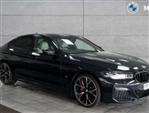 Ambient lighting pack - 5 Series, Connected package professional - 5 Series, M Aerodynamic pack - 5 Series, Parking assistant pack - 5 Series, Alarm system (Thatcham 1) with remote control and electronic engine immobiliser, Locking wheel bolts, DAB Digital radio, Favourite buttons, Airbags - driver/front passenger, rear and side, first and second row seats head airbags, front passenger seat airbag deactivation, Anti-lock braking system (ABS), Automatic Stability Control (ASC), Brake assist function, Brake energy regeneration, Cornering brake control (CBC), Crash sensor activating central locking release, hazard warning lights, fuel cut off and interior lighting, Deformation zones - front and rear with door reinforcements and bumpers up to 2.5 mph, DSC - Dynamic Stability Control, Dynamic brake control, Dynamic Traction Control - DTC, Electromechanical parking brake with automatic drive away release and auto hold function, Electronic brake force distribution, Engine drag torque control, Front and rear brake discs with interior ventilation, Front head restraints with anti-whiplash, Hill start assist, Mechanical child proof lock on rear doors, Passive protection for pedestrians, Rear door child safety locks, Side impact protection, Three point seat belts for all four seats, Two tone horn, Tyre pressure indicator, Warning triangle and first aid kit, Acoustic glazing, All round anti-corrosion system, Automatic windscreen wipers and automatic headlight, Automatically dimming rear view mirror, BMW Individual high gloss shadow line includes exterior mirror frame, window frame surround, B pillar finish, air breather in high gloss black, Body colour door handles, Body coloured bumpers, Door handle illumination, Dynamic brake lights with LED technology, Electric front and rear windows with fingertip open/close + anti-trap facility and comfort closing function, Electrically adjustable and heated exterior mirrors includes integrated direction indicators and automatic parking function, Folding exterior side mirror with auto- dimming, Follow me home headlight function, Heated windscreen washer jets, High gloss black active air stream kidney grille, LED daytime running lights, LED Headlights, LED third brake light, M designation on front side panels, left and right in chrome, M Sport exterior styling, Preparation for high beam assistant, Rear boot, Rear side wing doors, Trapezoidal visible exhaust tailpipes, 12V power socket in front and rear, 3 seat bench in 2nd row, Armrest - front and rear integrated door trim, centre console includes storage compartment, rear centre includes 2 cupholders, Child seat ISOFIX attachment with rear outer seats includes top tether, Cup holders (2 front and 2 rear), Front and rear footwell lights, Front reading lights, Height and length adjustable steering column and activation via lateral lever on the steering column, Lockable glove compartment with light, M door sill finishers, M specific pedals, M specific velour floor mats, Multifunction controls for leather steering wheel, Rear headrests, Single front passenger seat, Three spoke sport M leather steering wheel, 32GB hard disc drive (HDD) memory, Active Guard, Bluetooth connection, BMW ConnectedDrive online services, BMW Live Cockpit Professional sat nav system with 12.3"instrument display and high resolution control display, BMW Teleservices, Brake pad wear indicator, Cruise control with brake assist, Driving experience switch, eCall emergency call system, Electric Power Steering (EPS) with Servotronic, iDrive controller with shortcut buttons, Intelligent emergency call, Multifunctional instrument panel, Oil sensor for level and grade, On board computer inc. average speed, fuel consumption, liquid crystal Info display, journey computer, outside temperature display, personal profile, On-board diagnosis - OBD, Powered by Operating System 7.0, Service interval indicator, Speed limiting function, Stop/start button, 48V Mild hybrid technology, Diesel particulate