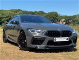 Automatic tailgate operation, remote opening with key, closing by tailgate button or remote control including taillight in LED technology, Bluetooth Hands free facility with USB audio interface and Voice Control, BMW ConnectedDrive online services, BMW Drive recorder, BMW legal emergency call, BMW Live cockpit professional with HUD, BMW Teleservices, Brake pad wear indicator warning light, Check control system, Condition based service, Electric boot lid - electrically opening/closing rear tailgate, Enhanced bluetooth telephony with wireless charging, Front/rear park distance control (PDC), iDrive controller with shortcut buttons, Integrated owner's handbook, Light on warning, M servotronic, Oil sensor for level and grade, Parking assistant plus with 360 degree surround view camera system and remote 3D view, PAS, Personal Profile, Rev counter, Service interval indicator, Start/stop button in red, Wi-Fi hotspot, Adaptive M suspension, Double wishbone front axle, Dynamic Damper Control, M Sport differential, M Twin power turbo 8 cylinder, Petrol Particulate Filter, Steptronic sport transmission with eight speed automatic and gearshift paddle switches on the steering wheel, Valve controlled exhaust system, xDrive (permanent all-wheel drive, variable torque distribution, including DSC to control traction interventions), Centre console media control knob, DAB Tuner enables digital radio reception, Favourite buttons, Black chrome exhaust tailpipes, BMW Individual high-gloss shadow line with extended contents includes kidney frame, clasp and air breather in black chrome, BMW Individual high-gloss shadow line with window frame and mirror base in black high gloss, Body colour bumpers, Carbon core - innovative lightweight construction with highly rigid and light carbon elements, Climate comfort windscreen, infrared reflecting with burglary-deterrent acoustic film, Door handle illumination, Dynamic brake lights, Electric adjustable/heated/folding door mirrors, Electric front windows, Follow me home headlight function, Frameless interior mirror, Front and rear bumper system with replaceable deformation elements, Full ornamental grille with kidney grille bars, Heated rear window, Heated windscreen washer jets, High beam assistant, High gloss black kidney grille, LED daytime running lights, LED rear lights, M carbon roof, M Sport exhaust system, Model logo on kidney, side strakes, right tailgate and door sill finishers, Rain sensor with automatic intermittent windscreen wipers control and headlights activation, Rear boot, Rear side wing doors, Soft close automatic (SCA) for doors, Sun protection glazing, Thermally insulated windscreen, Third LED technology brake light in rear window, Welcome lights in interior and door handle area, 2 X front 12v power sockets, 3 seat bench in 2nd row, 4 way electrically adjustable lumbar support for driver and front passenger, 4 zone control automatic air conditioning, Centre console and cupholder storage incl. USB, Dynamic ambient interior lighting, Entry lights on doors, Front centre armrest with light, 12V socket and USB and storage compartment, Front cupholders x 2, Front door pockets, Front reading lights, Glove compartment, Height adjustable headrests with integrated headrest look, Instrument and upper door panel in walknappa black leather, Interior light front centre above interior mirror, Lashing eyelets in luggage compartment, Lockable glove compartment with light, Luggage compartment light, M door sill finishers with illuminated BMW M8 designation, Microfilter and active carbon filter, Rear headrests, Rear heated seats, Split folding rear seat with 50:50 configuration, Steering column with adjustable height and length and activation via control on the steering column, Sunvisors with front ticket pocket and illuminated mirrors, Through loading function, Velour floormats, Connected package professional - M8, 3x3 point rear seat belts, ABS/EBD, Active front integrated look headrests, Active protectio