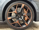 Adaptive cruise control with follow-to-stop and speed limiter, CUPRA drive profile selection with (Comfort/Sport/Individual), throttle response and gearshift mode, Digital cockpit, Dynamic road sign display, E-call, Four x USB Type C ports (2 in front and 2 in rear), Front and rear parking sensors, Front assist with forward collision warning braking reaction to vehicles, pedestrians and cyclists, Full link smartphone integration with Mirror Link, wireless Apple CarPlay and wired Google Android Auto, Intelligent park assist, Lane change assist with emergency assist, Lockable tailgate, Rear view camera, RPM, trip computer, outside temp gauge, instrument light brightness, low fuel warning light, lights on reminder, gearshift indicator, Service interval indicator, Side and exit assist, Start/stop system with regenerative braking, Virtual pedal with electric tailgate, Wireless phone charger, Auxiliary input socket, Immersive by Sennheiser TM - 10 speakers, 1 central speaker, 1 subwoofer, Auto dimming rear view mirror, Body colour door handles, Body coloured bumpers, Cupra sports bumpers, Dark tinted rear windows, Electric front/rear windows, Electrically adjustable, heated and folding door mirrors, Gloss black roof rails, High beam assist, LED front fog lamps with cornering function, LED rear fog lamp, Matrix LED Headlights with variable light distribution, Matrix Beam and Dynamic headlight range control, Rain sensing wipers, Rear side wing doors, Rear wash/wipe, Separate daytime running light with automatic headlight control and coming home feature, Third brake light, Welcome light with logo projector in door mirrors, 12v power supply in centre console, 3 seat bench in 2nd row, 5 headrests, 60/40 split rear bench seat with armrest, Ambient lighting (glovebox, footwell, ambient lighting multicoloured), Black headlining, Cupra sports pedals, CUPRA Supersports, heated steering wheel with satellite buttons, Electrically adjustable driver seat and lumbar support with memory function + manually adjustable passenger seat, Front and rear reading lights X 4, Front centre armrest, Heated front seats, Height/reach adjust steering wheel, Illuminated interior front door sills, Interior wraparound lighting, ISOFIX points in outer rear seats with top tether anchorage points, Single front passenger seat, Sliding boot cover, Sunvisors with illuminated mirror, Textile cloth upholstery, Three zone climate control, Dynamic and comfort pack - Leon Cupra, Media system plus with 12.9"display + navigation pack - Leon Cupra, 3 point seatbelts on all rear seats, ABS, Akebono performance brake calipers, Brake control system - ESC and brake booster, Child proof door locks, Driver and front passenger airbags with front passenger airbag de-activation, front side and curtain airbags, Electronic parking brake, Hill hold control, Pre-crash front and rear seat belt tensioner, window closure and hazard lights, Rear disc brakes, Seat belt reminder for front and rear seats, Tiredness recognition system, Tyre pressure monitoring system, Anti theft alarm system with interior monitoring in cab, backup horn and towing protection, KESSY Advanced - Keyless start, keyless entry, Locking wheel bolts, Chrome and copper interior detailing, 19"Hailstorm forged machined R black and copper alloy wheel with 91Y tyres, Breakdown kit, Tool kit,
