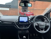 Bluetooth system, Electric power steering, Ford easy fuel, Ford SYNC 3 Navigation system incl 8"touchscreen, 7 speakers, FordPass connect, Apple carplay, android auto, voice control and emergency assistance, Rear parking distance sensors, Selectable drive modes (Normal, Sport, Track), Trip computer, 2 USB ports, Auxiliary input socket, DAB Digital radio, Steering wheel mounted controls, Body colour bumpers, Body colour door handles, Body colour rear spoiler, Body coloured electrically operated and heated door mirrors with side indicators, Chrome beltline trim, Chrome front grille, Chrome lower window surround, Cornering front fog lights, Electric front windows/one touch facility, Electric rear windows, Quickclear heated windscreen, Rain sensing wipers and auto dimming rear view mirror, Rear privacy glass, Rear wiper, 3 spoke leather trimmed steering wheel with audio control, 60/40 split folding rear seat, Adjustable head restraints, Boot carpet, Centre console with opening armrest, 2x cupholders, 12v and USB, Chrome inner door handles, Cloth upholstery, Footwell illumination, Front floor mats in velour, Front map reading lights, Front seat and rear pockets, Illuminated glovebox, Leather gaiter, Load area light, Luxury woven headliner, Manual 2 way passenger seat adjust, Manual 4-way driver seat adjust, Manual air conditioning, Overhead console with sunglasses holder, Pollen filter, Rake/reach adjustable steering wheel, Sensico wrapped steering wheel, NCAP Pack - Fiesta, 3 point seatbelts on all rear seats, ABS+EBA, Curtain airbags, Driver and passenger airbags, Drivers knee airbag, Electronic stability control with hill start assist, Front passenger airbag deactivation, Front side airbags, Seatbelt warning, Two tone horn, Tyre pressure monitoring system, Keyless start with 'Ford Power' starter button, MyKey system, Remote central locking & engine immobiliser, Thatcham Cat.1 alarm, 16"10 spoke alloy wheels,