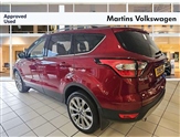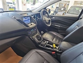 Apple car play/Android Auto, EPAS, Hands free power tailgate, Hands free telephone, Trip computer, Auxiliary socket for external device, Remote audio controls on steering wheel, USB connection, Auto dimming rear view mirror, Bi-Xenon headlights with dynamic bending, active beam shape plus LED rear lamps and headlight washer jets, Body colour bumpers, Body colour rear spoiler, Electric panoramic glass sunroof, Electrically operated and heated door mirrors with side indicators, Electrically operated front and rear windows with global closing, Front fog lights, Front scuff plate, LED daytime running lights, Power folding door mirrors, Quickclear heated windscreen, Rain sensor windscreen wipers, Tailgate wash/wipe, Twin exhausts and rear diffuser, 10 way power adjustable drivers seat, 6 way manually adjustable passenger seat with lumbar support, 60/40 split/folding rear back and cushion, Auxiliary power socket in luggage area, Centre console with stowage tray/bottle holder/CD stowage/front and rear 12V power point, Driver seat lumbar adjustment, Driver/passenger front seatback pockets, Dual electronic automatic temperature control, Folding rear centre armrest, Footwell courtesy lights front and rear, Front floor mats, Front head restraints, Front overhead courtesy lights with theatre style dimming and delay, Front/rear reading lights, Full leather upholstery, Heated front seats, Isofix system on outer rear seats, Leather steering wheel and gear knob, Multi-colour ambient interior lighting, Reach + rake adjustable steering column, Rear floor mats, Rear head restraints, Sports style front seats, Stowage unit in upper instrument panel, Tie down hooks, Tonneau cover, Variable intensity instrument illumination, Appearance pack - Kuga, 3 point seatbelts on all 3 rear seats, ABS/EBD, Airbags - front driver/passenger, front and rear curtain, Drivers knee airbag, EBA, Electric traction assist system, Electronic Stability Programme, Front passenger airbag deactivation switch, Hill start assist, Intelligent Protection System (IPS), Tyre pressure monitoring system, Immobiliser, Keyless entry system with handsfree boot opening + electric power tailgate, Keyless start with 'Ford Power' starter button, Locking wheel nuts, MyKey system, Remote central locking, Thatcham Cat.1 alarm, 19"10 spoke polished paint alloy wheels, Mini steel spare wheel,