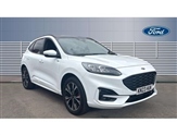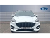 Driver impairment monitor, Ford easy fuel, Ford SYNC 3 with 8"colour touchscreen, App Link, andriod auto/apple carPlay and navigation with Ford pass connect, Front and rear parking sensors, Hands free power tailgate, Intelligent speed assist, Lane keeping aid with lane departure warning, Mobile phone wireless charging pad, Power assist steering, Selectable drive modes, 3-Pin Home charge cable (230V/16A Domestic socket), Sports suspension, Ford DAB audio system with 6 speakers, Auto dimming rear view mirror, Auto headlamps with high and low beam, Auto wipers, Black roof rails, Front LED fog lights with cornering function, Full LED headlamps, Large rear spoiler, LED daytime running lights, LED rear lights, Power folding heated door mirrors with puddle lights, Power front/rear windows with global close, Power opening panoramic roof, Privacy glass, Quickclear heated windscreen, ST Line body styling kit with unique front and rear fascia and bumper, rear painted diffuser, front painted skid plates, dark mesh upper grille, ST Line front scuff plates, Twin exhausts, 10 way power adjustable drivers seat, 2nd row sliding seats, 8 way manual passenger seat including lumbar support and height adjust, Alloy pedals, Ambient lighting, Centre console with electronic parking brake, Dark headlining and pillars, Dual electronic automatic temperature control, Flat bottomed leather steering wheel in sensico with red stitching, Front and rear head restraints, Heated passenger and driver seats, Rear charging point, Sensico partial premium leather upholstery, Sports seats, ST Line front and rear floor mats, B&O with large instrument cluster pack - Kuga, 3x3 point rear seatbelts, Airbags - front driver/passenger, front and rear curtain, Drivers knee airbag, Electronic stability control (ESC) and ABS, Ford MyKey Gen 2 safety system, Post collision braking, Powered child proof rear door locks, Pre collision assist with autonomous emergency braking, Red brake calipers, Tyre pressure monitoring system, Engine immobiliser, Keyless entry, Keyless start with 'Ford Power' starter button, Locking wheel nuts, Remote powered central double locking doors, Thatcham category 1 alarm,