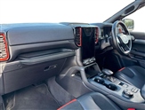 360 degree camera, A-pillar assist handle, Advanced automated park system, Blind spot monitoring with trailering, Electric power assisted steering, Electronic automatic gearshift, Front parking aid, Full TFT/LCD instrument cluster, Intelligent speed assistant, Lane changing warning and aid, Passenger side roof mounted grab handle, Pro trailer backup assist, Reverse brake assist, Reverse parking aid, Speed sign recognition, Wireless charging pad, 360 lighting, Accent colour HD front bumper, Acoustic laminated windscreen, Assisted conventional tailgate, Auto high headlamp, Automatic headlamp levelling, Automatic headlights, Black front fender grille, Black grille, Body colour exterior mirrors, Body coloured door handles, Cast alloy side step, Daytime running lights, Dual power heated fold back door mirror with puddle lamps, E-marked glass, Electric rear window defroster, Electric windshield defroster, Electrochromic interior mirror, Extra large wheelarch flares, Fog lamp bezel, Front splash guard, Front towing hooks, Fuel tank guard, High mounted stop lamp, LED Front fog lamp, Level 3 LED matrix headlamps, Level 3 Taillamps, Manual liftgate, Metal underbody protection, Non locking capless fuel fill, Power front windows with one touch up/down, Power rear windows, Privacy glass, Rain sensitive windshield wipers, Rear bumper step accent color, Rear fog lamps, Rear splash guard, Rear towing hooks, Self coloured decklid handles, Tempered glass front window, Under hood engine cover, 12v socket in bedliner, Cargo light, Console with double lid, Driver and passenger sunvisor with mirror, Dual control system - Electronic air temperature control (EATC), Fresh air heater, Front premium floor mats, Heated steering wheel, High series air register, LED ambient interior lighting, Load box edge protectors, Locking glove box lid, Non woven carpet, Overhead console with dome lamps, Pollen filter, Pull out cup holder, Radio noise supression, Rear floor ducts, Roof storage for driver sunglasses, Steering wheel with multimedia controls, Super matte leather upholstery, Tie down hooks, Washer tank level warn lamp, Front seat pack 9 - Ranger, Functional upgrade pack 3 - Ranger, Heavy duty terrain pack - Ranger, ICE feature pack 106 - Ranger, Interior trim pack 15 - Ranger, Lighting package level B - Ranger, Rear seat pack 15 - Ranger, Technology package 73 - Ranger Raptor, Trailer tow pack - Ranger, Wheel pack 19 - Ranger, Breakdown warning triangle, Child proof rear door locks, Driver and passenger airbag, Dual note electric horn, 2 Remote control unit - key fob, Power door dead locks, Stolen vehicle recovery system, Tailgate lock, Thatcham alarm system, Thatcham security system, 400W Power inverter, ABS/ESP brakes with electronic brake boost, Battery management system, Cabin socket and loadbox socket, Collision mitigation system 2, Electric parking brake, Electrical outlet 3, Engine start/stop system, Front and rear disc brakes, Locking front axle, Locking rear axle, Performance suspension, Post impact braking, Rear power point plug, 17"alloy wheels painted in precision grey and all terrain tyres with Ford carbon black centre cap, 17"Aluminium spare wheel, Spare tire lock,