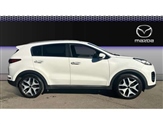 7"touch screen, Apple car play/Android Auto, Bluetooth connectivity with voice control, Colour information display, Cruise control + speed limiter, Digital clock, Emergency stop signalling system, Front and rear parking sensors, Kia connected services, Lane keep assist, Satellite navigation with rear view parking camera, Speed limit display, Speed sensitive power steering, Stop/start button, Trip computer, 6 speakers, Bluetooth audio streaming, DAB Radio with MP3, Steering wheel mounted audio controls, USB/iPod/auxiliary input connections, Auto dimming rear view mirror, Automatic defog system, Automatic front rain sensing wipers, Automatic headlights, Black side sill moulding, Body colour bumpers, Body colour electric adjustable door mirrors, Cornering light, Dual exhaust pipes, Electric folding door mirrors, Electric windows, Follow me home headlights, Front drivers side windows/one touch up/down, Headlamp levelling, Heated door mirrors, High beam assist, LED daytime running lights, LED indicators in door mirrors, LED rear lights, Privacy glass (rear side windows and rear screen), Rear spoiler, Rear wiper, Roof rails, Shark fin roof aerial, Speed sensitive front wipers, Tinted glass, Trailer stability assist, Welcome home function, Wide angle drivers door mirror, 12V power in rear centre console, 12V power point front, 3 passenger grab handles, 60/40 split folding rear seat, Air filter, Centre console storage box/armrest, Centre room lamp, Door armrest in leather, Door courtesy lamps, Driver's lumbar support, Driver's seat height adjuster, Driver/passenger sunvisors with ticket holders, Dual zone automatic air conditioning, Front and rear door pockets, Front map lights, Front seat and rear pockets, Heated front and outer rear seats, Height adjustable headrests, Illuminated glovebox, Illuminated vanity mirrors, Isofix child seat preparation, Leather trimmed gearshift, Leather upholstery, Luggage area lamp, Luggage compartment cover, Luggage net with hooks, Rear centre armrest with cupholder, Rear coat hooks, Rear headrests, Satin chrome interior door handles, Stainless Steel Scuff Plates, Tilt/telescopic adjustable steering wheel, Ventilation ducts to rear compartment, Exterior Styling Pack - GT-Line, Interior Styling Pack - Sportage GT-Line/GT-Line S, 3 point front seat belts, 3x3 point rear seatbelts, ABS/EBD, Active front headrests, Automatic unlocking of doors in case of impact, Dual front airbags, ESP + traction control, Front seatbelt pretensioners + load limiters, Front side airbags, Full size curtain airbags, Height adjustable front seatbelts, Hill start assist control (HAC), Passenger airbag deactivate switch, Rear child proof door locks, Tyre pressure monitoring system, Anti theft alarm, Deadlocks, Immobiliser, Locking wheel nuts, Smart keyless entry, Speed sensitive auto door locking, High gloss black centre fascia, 19"alloy Wheels B-type, Temporary spare wheel,