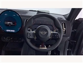 Bluetooth connection, Circular OLED Screen, Compatible mobile phone bluetooth with audio streaming, Cruise Control (DCC), Digital dashboard display, Driving assistant, Driving Assistant Plus Preparation, E-call, Electro-mechanical speed dependant steering assistance, MINI Experience Modes, MINI Head up display, Mini navigation system, MINI TeleServices, Parking assistant in camera and ultrasound based assistance system, rear view camera, parking aid and distance control, Adaptive suspension, Double clutch sports transmission, Quad exhaust system, DAB Digital radio, Harman Kardon surround sound system, Personal eSim, Auto tailgate, Electric adjustable heated door mirrors, Front and rear apron, Front and rear electric windows, Heated rear window, High beam assistant, High gloss hexagonal patterned grill surround, Interior rear-view mirror with automatic anti-dazzle function, LED daytime running lights, LED headlights with extended contents including Adaptable light signatures, LED rear lights, LED third brake light, Rain sensor with auto headlights, Rear roof spoiler with airblades, Rear side wing doors, Rear window wiper, Roof rails, 3 seat bench in 2nd row, 60/40 split rear bench seat, Anthracite headliner, Auto air conditioning, Driver and front passenger seat heating, Floor mats, Front armrest, Front headrests, Heated steering wheel, Height and length steering column adjustment, JCW Front sports seats, Lidded storage box in Black/Red knit, Luggage compartment separating net, Perforated Vescin steering wheel, Rear headrests, Seat adjustment for rear seats, Single front passenger seat, Sunvisors with vanity mirrors, Vescin/Cloth upholstery, Wireless charging tray, Interior and exterior mirror package - Mini Countryman, 3x3 point rear seat belts, 6 Airbags - front, side, head and seat belt tensioners, ABS, DSC - Dynamic Stability Control, Electronic handbrake, Electronic Stability Programme (ESP), Front ISOFIX (iSize), Hill descent control, Hill hold assist, Hill start assist, JCW logo in brake calipers, JCW Sport brakes with Chilli Red calipers, Manual rear child locks, Traction control, Tyre pressure monitoring system, Warning triangle, Alarm system with tilt sensor, monitoring doors, bonnet interior and tailgate, Auto drive away locking, Comfort access system, Deadlocking function, Electronic vehicle immobiliser, Locking wheel bolts, Remote control locking, Start/stop toggle with keyless go, JCW Black/Red dashboard knit, 19"JCW Runway Spoke Black alloy wheels, MINI Mobility Kit,