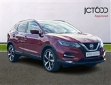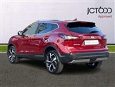 360 degree Intelligent around view monitor, Advanced drive assist display 5'' TFT coloured screen, Apple car play/Android Auto, Bluetooth connectivity, Cruise control + speed limiter, Electric speed sensitive power steering, Front parking sensors, Idle stop/start system, Intelligent park assist, Lane departure warning system, Nissan connect evo 7"touchscreen navigation and entertainment system, Normal or sport selectable steering, Outside temperature sensor, Premium Tomtom connected services, Push button starter, Rear parking sensors, Service interval indicator, Smartphone integration, Traffic sign recognition, Trip computer, Voice control system, Nissan chassis control (intelligent ride control, intelligent trace control), 6 speakers, AM/FM radio, CD audio system, Aux-in socket, DAB Digital radio, Steering wheel mounted audio controls, USB port, Anti dazzle rear view mirror, Auto wipers, Body colour bumpers, Body coloured door handles, Body coloured door mirrors, Chrome window surround, Daytime running lights dip function when turn signal applied, Electric adjustable heated door mirrors with memory, Electric folding door mirrors, Electric front and rear windows with one touch illuminated window controls, Front fog lights, High beam assist, Intelligent auto headlights, LED indicators in door mirrors, Matt silver roof rails, Privacy glass, Rear roof spoiler, Rear wiper with reverse link, Shark fin antenna, Silver rear styling plate, Underbody vortex generators, 2 X front 12v power sockets, 3 height adjustable rear headrests, 60/40 split folding rear seat, Ambient interior lighting, Ambient lighting around centre console, Boot lighting, Centre console storage box/armrest, Chrome interior door handles, Dual zone climate control, Electric 4-way lumbar support for drivers seat, Electrically adjustable driver seat with memory, Electrically adjustable passenger seat, Front and rear door pockets with bottle holders, Front and rear seat belt pre-tensioners with load limiters, Height adjustable front headrests, Individual rear seat reading lights, ISOFIX restraints on outer rear seats x2, Leather D shaped steering wheel, Leather gear lever, Leather knee pad, Luggage board system, Luxury floor mats, Manual height adjustable passenger seat, Manual lumbar support on passenger seat, Monoform front sport seats with plastic backboard, Nappa leather upholstery with 3D quilted, Parcel shelf stow function under luggage board, Pollen filter, Rear armrest with 2 cupholders, Synthetic leather wrapped door handle with contrasting stitching, Tilt/telescopic adjustable steering wheel, Glass roof pack - Qashqai, Heat package - Qashqai, LED pack - Qashqai, 6 airbags - Driver, front passenger, curtain and side airbags, ABS, ESP, EBD and brake assist, Auto hold function, Child locks on rear doors, Electronic parking brake, Front and rear seat belt warning, Height adjustable front seatbelts, Hill start assist, Intelligent emergency braking with pedestrian recognition, Passenger airbag deactivation system, Three 3 point rear seatbelts, Tyre pressure monitoring system, Anti-theft immobiliser, Intelligent Key, Remote central locking, Thatcham Cat.1 alarm, Carbon graphite dash trim, 19"Alloy wheels,