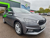 Advanced driver attention and drowsiness monitor, Bluetooth connection, Electromechanical power steering, Exterior temperature gauge, Service interval indicator, Traffic sign recognition, Virtual cockpit with 10.25"colour display, Wireless SmartLink for Apple CarPlay and Android Auto, 6 Speakers (4 in front and 2 in rear), 9.2"colour display skoda navigation system with voice control and web radio, Auxiliary socket for external MP3 player, DAB digital radio reception, Auto dimming rear view mirror, Body colour door mirrors, Body coloured bumpers, Chrome window surround, Door mirror integrated indicators, Front and rear electric windows, Front window wiper intermittent control, Headlight range control - Automatic, Ice scraper in fuel cap, LED 3rd brake light, LED daytime running lights with coming and leaving home feature, LED rear lights, Privacy glass, Rear LED fog light, Rear side wing doors, Rear window wiper with washing nozzles, Roof mounted spoiler, SKODA tailgate lettering in chrome, Unique dark chrome design logo on alloy wheels, 2 LED reading lights in front and rear, 3 rear headrests, Backrest split and folding, Central console with removable cup holder and storage box, Chrome handbrake release button, Comfort seats, Door sills with fabia badging, Dual zone air conditioning with climatronic electronic control, Fabric upholstery, Front centre armrest, Gearshift knob/handle in leather, Hand brake lever handle in leather, Height adjustable front headrests, Height adjustable front seats, Height adjustable steering wheel, ISOFIX and TopTether anchorage points to the outer rear seats, ISOFIX and TopTether on the front passenger seat, Luggage compartment lighting, Manually adjustable lumbar support in front seats, Metallic grey interior door handles, Pollen filter, Rear seat bench unsplit, Single front passenger seat, Skoda lettering on steering wheel, Storm grey headlining, Sun visors with mirror and airbag label on passenger side, Textile floor mats, Ticket holder, Umbrella in drivers door, 3-point height adjustable front seats belts with pretensioner and force limiter, Automatic warning lights in case of crash, Driver and passengers airbag with switch off function, e-Call+, ESC including ABS, MSR, ASR, EDS, HBA and XDS, Front and rear seat belt warning, FRONT ASSIST (AEB City and AEB Inter Urban), Front side airbags, Head airbags, Hill hold control, One tone horn, Pedestrian protection, Three rear 3-points safety seat belts with pretensioner and force limiter including stop function for outer rear seat belts, Tyre pressure monitoring system, Anti-theft alarm system including immobiliser, interior monitoring, backup horn, and towing protection, Central locking with radio remote control, interior controls, SAFE function and 2 foldable keys, Black painted air vents, Metallic grey central console cover, Metallic grey upper decorative trim, Satin black door and side trim panel in front, Textile microsuede grey lower decorative trim with art grey stitching, Anti-theft wheel bolts protection, Super-low rolling resistance tyres,