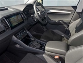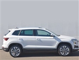 Advanced driver attention and drowsiness monitor, Drive Mode Selection including ECO function, Electro-mechanical PAS, Emergency services call system, Outside temperature gauge, Sensor for driver assistance systems, Service interval indicator, SmartLink wireless for Apple and wired for Android, Start/stop system with regenerative braking, Traffic sign recognition, USB C Port x 2 in front centre console, Virtual Cockpit - 10.25"digital display, Virtual pedal with electrically operated boot door, Wireless smartphone charging, DAB radio with Bluetooth, USB connection, Acoustic glass, Aero front windscreen wipers with intermittent function, Auto dimming rear view mirror with light and rain sensors, Black electric window control buttons, Body colour door mirrors and handles, Electric front and rear windows with child proof lock, Extended rear roof spoiler, Heated rear windscreen, LED daytime running lights, LED rear lights with high functionality welcome effect and dynamic indicators, Light assistant (coming/leaving home/tunnel light), Plastic scuff plates in door apertures, Privacy glass, Rear side wing doors, Rear window wiper with washer system and intermittent control, Safety reflectors on front doors, Third brake light, Unique dark chrome design logo on alloy wheels, 1.5 litre bottle holders in driver and front passenger door panels, 12V socket in boot, 12v socket in front centre armrest with storage compartment and rear air vents, 2 spoke leather heated multifunction steering wheel with DSG paddles, 2 x Tablet holder, 3 rear height adjustable headrests, 3 seat bench in 2nd row, 4 foldable roof handles with rear coat hooks, Black floor carpet, Cargo elements in boot, Chrome inner door handles, Foldable hooks in the boot, Front head restraints, Height adjustable front three point seats belts with tensioners, Height/reach adjust steering wheel, Ice scraper, Illuminated glovebox, Illuminated luggage compartment, Interior noise suppression, Isofix child seat preparation for front passenger seat, Isofix child seat preparation outer rear, Manual lumbar support for front seats, Pearl grey interior ceiling, Pen holder, Pollen filter, Rear boot cover, Rear package tray, Rear reading lights, Rubbish bin door, Safety vest holder, Single front passenger seat, Skoda lettering on steering wheel, Storage box in upper central dashboard closed, Sunvisors with illuminated vanity mirrors, Textile floor mats, Ticket holder, Columbus pack - Karoq, Design Pack - Karoq, Non Smokers pack, Parking pack - Karoq, Automatic door unlocking in case of crash, Automatic fuel cut off in case of crash, Driver airbag, Electronic parking brake with auto hold function, Emergency rear braking signal, ESC (incl. ABS+MSR+ASR+EDS+HBA+DSR+RBS+MKB), Front side airbags, Head airbags, Hill hold control, Knee airbags, Passenger airbag with switch-off function, Pedestrian monitor, Seatbelt reminder signalisation and pretensioner for all seats, Three point seatbelts rear, Two tone horn, Tyre pressure monitor, Alarm with interior monitoring, back up horn and tilt sensor with safe function, Electronic engine immobiliser, Keyless entry and start/stop, Remote central locking with 2 remote folding keys, Black centre console, Chrome framed air vents, Satin black dashboard, Anti-theft wheel bolts protection, Breakdown and tool kit,
