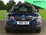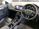 Chrome framed air vents, LED Interior lighting pack with Skoda welcome logo - Karoq, 19"Crater silver alloy wheels with anti theft wheel bolts, Storage on wheel cover, Alarm with interior monitoring, back up horn and tilt sensor with safe function, Electronic engine immobiliser, Keyless entry and keyless start with safe system, Remote central locking with 2 remote folding keys, DAB radio with Bluetooth, SD card slot, USB connection, Airbags - Front side, head, knee and curtain, Automatic door unlocking in case of crash, Automatic fuel cut off in case of crash, Driver airbag, Electronic parking brake with auto hold function, Emergency rear braking signal, ESC including ABS, MSR, ASR, EDS, HBA, DSR, RBS, MKB and traction control, Front assist radar scanning of the space in front of the car with automatic braking, Hill hold control, Passenger airbag with switch-off function, Pedestrian monitor, Seatbelt reminder signalisation and pretensioner for all seats, Three point seatbelts rear, Two tone horn, Tyre pressure display, Tyre pressure monitor, Acoustic glass, Aero front windscreen wipers with intermittent function, Automatic headlight control system, Body colour door handles, Body coloured bumpers, Chrome outside aluminium bar around the window, Chrome roof rails, Full LED headlights + adaptive front light system + LED daytime running lights and front cornering fog lights, Headlight washers, Heated rear windscreen, LED rear lights with high functionality, Light assistant (coming/leaving home/tunnel light), Panoramic sliding sunroof, Privacy glass, Safety reflectors on front doors, Silver door mirrors, Third brake light, 1.5 litre bottle holders in driver and front passenger door panels, 12V socket in boot, 12v socket in front centre armrest with storage compartment and rear air vents, 2 Folding hooks and nets in boot, 2 Front readings lights for driver and passenger, 3 rear height adjustable headrests, 4 foldable roof handles with rear coat hooks, 4 lashing points on luggage floor, Backrest release, Cargo elements in boot, Chrome inner door handles, Dual zone climate control, Electrically adjustable driver's seat with memory function includes lumbar support + heated folding door mirrors with auto dimming and boarding spots, Folding tables on the front seat backrests, Front seat and rear pockets, Height adjustable front three point seats belts with tensioners, Height adjustable passenger seat, Height/reach adjust steering wheel, Ice scraper, Illuminated and cooled glovebox, Illuminated luggage compartment, Isofix child seat preparation outer rear, Leather upholstery, Manual lumbar support for front passenger seat, Net programme in boot, Pen holder, Pollen filter, Rear boot cover, Rear reading lights, Rear seats fixed folding and divided 60:40, Removable LED torch in the boot, Retractable parcel shelf attachable to tailgate, Safety vest holder, Storage box in upper central dashboard closed, Storage compartment below the passenger seat, Storage net on centre console passenger side, Sunvisors with illuminated vanity mirrors, Textile floor mats, Umbrella under passenger seat, VarioFlex seats with retractable parcel shelf, Columbus satellite navigation with 9.2"touchscreen display, integrated Wi-Fi, gesture control and WLAN, Driver alert system, Driver fatigue sensor, Driver profile selection, Electro-mechanical PAS, Front and rear parking sensors, Multifunction colour trip computer, Outside temperature gauge, Rear cross traffic alert, Rear view camera, Service interval indicator, Start/stop system with regenerative braking, Traffic sign recognition, Diesel particulate filter,