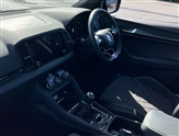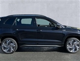 8"Digital display, Care connect, Colour multifunction trip computer, Driver fatigue sensor, Emergency services call system, Outside temperature gauge, Service interval indicator, SmartLink wireless for Apple and wired for Android, Start/stop system with regenerative braking, USB C Port x 2 in front centre console, Virtual pedal with electrically operated boot door, 8 Speakers, DAB radio with Bluetooth, USB connection, Acoustic glass, Aero front windscreen wipers with intermittent function, Auto dimming rear view mirror with light and rain sensors, Automatic headlight control system, Black door mirrors, Black electric window control buttons, Black radiator grille, Black roof rails, Body colour door handles, Electric front and rear windows with child proof lock, Front door steps with SportLine logo, Heated rear windscreen, LED daytime running lights, LED rear lights with high functionality welcome effect and dynamic indicators, Light assistant (coming/leaving home/tunnel light), Panoramic sliding sunroof, Plastic scuff plates, Privacy glass, Protective door side sills in body colour, Rear diffuser, Rear side wing doors, Rear spoiler, Rear window wiper with washer system and intermittent control, Safety reflectors on front doors, Skoda lettering on tailgate in black, Sportline badge on front fender, Sportline decorative inserts with badging, Sports front and rear bumpers, 1.5 litre bottle holders in driver and front passenger door panels, 12V socket in boot, 12v socket in front centre armrest with storage compartment and rear air vents, 2 Folding hooks and nets in boot, 3 rear height adjustable headrests, 3 seat bench in 2nd row, 3 spoke leather sports multifunction steering wheel and silver stitching, 4 foldable roof handles with rear coat hooks, Black floor carpet, Black roof headlining, Chrome inner door handles, Double sided boot floor, Foldable hooks in the boot, Front head restraints, Height adjustable front three point seats belts with tensioners, Height/reach adjust steering wheel, Ice scraper, Illuminated glovebox, Illuminated luggage compartment, Isofix child seat preparation outer rear, Manual lumbar support for front seats, Pen holder, Pollen filter, Rear boot cover, Rear reading lights, Rear seats fixed folding and divided 60:40, Rubbish bin door, Safety vest holder, Single front passenger seat, Storage box in upper central dashboard closed, Sunvisors with illuminated vanity mirrors, Textile floor mats, Ticket holder, Titan black interior ceiling, Welcome animation with sportline logo, Light Pack - Karoq, Parking pack - Karoq, Automatic door unlocking in case of crash, Automatic fuel cut off in case of crash, Child locks on rear doors, Driver airbag, Electronic parking brake with auto hold function, Emergency rear braking signal, ESC including ABS, MSR, ASR, EDS, HBA, DSR, RBS, MKB and traction control, Front side airbags, Hill hold control, Knee airbags, Passenger airbag with switch-off function, Pedestrian monitor, Seatbelt reminder signalisation and pretensioner for all seats, Three point seatbelts rear, Two tone horn, Tyre pressure display, Tyre pressure monitor, Alarm with interior monitoring, back up horn and tilt sensor with safe function, Electronic engine immobiliser, Keyless entry and start/stop, Remote central locking with 2 remote folding keys, Black air vent surround, Black centre console, Satin black dashboard, Satin black door trim, 19"Sagitarius anthracite alloy wheels with matt black aero inserts, Anti-theft wheel bolts protection, Matt black aero hub caps, Storage on wheel cover, Tool kit,
