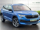Bluetooth system, Columbus satellite navigation with 9.2"touchscreen, integrated Wi-Fi, web radio, Digital voice enhancement, E-call, ECO Stop/start function, Exterior temperature indicator, Progressive steering, Rear view camera, Smartlink wireless for apple carplay and wired for android auto, Speed limiter, Tailgate unlocking from outside, USB C Port x 2 in front centre console, Wireless charging, 8 Speakers, DAB Digital radio, Aero front windscreen wipers with intermittent function, Aero rear window wiper, Auto dimming rear view mirror, Black roof rails, Black sports styling including front grille and window surrounds, Black wheel arch surrounds, Body colour bumpers, Body colour door handles, Electric adjustable/heated/folding door mirrors, driver side auto dimming with boarding sports and memory function, Electric front and rear windows, Extended rear spoiler with finlets in gloss black, Front fog lights, Full LED matrix headlights with AFS (adaptive front light system), cornering function and AWL (all weather lighting system), Gloss black door mirrors, Headlight washers, Heated rear window, Invisible tailpipe, LED daytime running lights, LED rear fog light, LED third brake light in rear spoiler, Light assistant (coming/leaving home/tunnel light), Off-road style lower front bumper element, Privacy glass, Rain and light sensors, Rear diffuser, Rear LED lights (high functionality) with welcome effect and dynamic indicators, Rear side wing doors, Safety reflectors on front and rear doors, Sportline badge on front fender, Sports front and rear bumpers including lower rear chrome strip, Tailgate lettering in Black, Window control switches with black trim, Without engine designation, 12V socket in boot, 2 rails with 2 hooks, 2 seat bench in 3rd row, 3 seat bench in 2nd row, 4 foldable roof handles with rear coat hooks, 60:40 foldable rear seat with sliding adjustment and backrest angle adjustment, Aluminium pedals, Black roof headlining, Bottle holders in door panel in the 1.5 litre front and 1 litre rear, Cargo storage compartments, Chrome headlight control button, Chrome interior door handles, Coat hooks on B pillar, Covered storage compartment on driver side, Front centre armrest with storage compartment, cup holder and 12V socket, Front courtesy lights, Gear shift lever with chrome frame and black gloss insert, Grey stitching in front and rear armrests and door armrests + door inserts, Height adjustable front headrests, Illuminated and cooled glovebox, Illuminated luggage compartment, Isofix child seat fittings in outer rear seats with top tether, Manually adjustable steering column, Microsuede door panels, Net programme in boot (1x horizontal Net, 2x vertical Nets), Overhead glasses storage compartment, Pollen filter, Rear centre armrest with cupholders, Single front passenger seat, Sliding trunk cover, Small Bags on the inner sides of the front backrests, Sports seats, Sunvisors with illuminated vanity mirrors, Three rear height adjustable headrests, Ticket holder on A Pillar, Umbrella in door panel, Variable boot floor, LED Interior light pack - Kodiaq, Auto door release and activation of warning lights in the event of an accident, Child locks on rear doors, Driver and front passenger airbag with knee airbag and front passenger airbag deactivation, Electronic parking brake with hill start assist, Emergency rear braking signal, ESC (incl. ABS+MSR+ASR+EDS+HBA+DSR+RBS+MKB), Front assist with autonomous emergency braking, Front side airbags with curtain airbags, Fuel cut off safety device, Height adjustable front 3 point seatbelts + pretensioners, Hill hold control, Rear disc brakes, Safety vest holder in door, Seat belt reminder for all seats, Three point rear seat belts, Two tone horn, Tyre pressure monitor, Alarm with interior monitoring and tilt sensor with safe function, Anti-theft wheel bolts, Immobiliser, Keyless entry and start system (KESSY), Remote central locking with 2 keys, Black air vent surround, Carbon finish