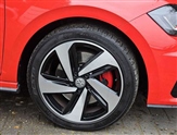 App-Connect, ACC - Adaptive cruise control with front assist, forward collision warning, distance monitoring, city emergency brake and speed limiter, Digital clock, Driver alert system, Driving Mode Selection with four preset modes - Eco, normal, sport or individual modes, Multifunction computer plus, Power assisted speed sensitive steering, Speedo and rev counter, electronic odometer, trip, service interval display and fuel gauge, Start/stop system, Volkswagen connect, Warning buzzer and light for front seatbelts unfastened, Battery regeneration during braking, Galvanished body, Lowered sports suspension, XDS electronic differential lock, Black grille with chrome surround, Body colour door handles, Body coloured side sills, Dusk sensor + automatic driving lights, Electric front windows, Electrically foldable, adjustable and heated door mirrors with reverse activated kerb view adjustment on passenger's side, Extended sill strips flared in black, Front fog lights including static cornering, Front windscreen washers and wipers with 4 speed intermittent delay, Gloss black rear spoiler, Heat insulating tinted glass, Heated rear window with auto timer, High level 3rd brake light, LED darkened rear light clusters, LED daytime running lights, LED dipped and main beam headlights with automatic range adjustment, LED rear number plate lights, Rear electric windows, Rear tinted glass from B-pillar backwards approx 65% tinted, Rear windscreen washer and wiper with interval delay, reverse activated, Stainless steel door sill protections with GTI logo, Twin chrome exhaust tailpipes, Unique GTI badging, 2 bag hooks in luggage compartment, 2 front cupholders and 12 V socket with cover, 3 rear head restraints, 60/40 split folding rear seat, AlumInium look pedals, Ambient lighting in front foorwell, front/rear door and dashboard light strips, Black roof lining and sun visors, Centre console storage with open storage compartment, Chrome-plated electric mirror adjustment switch surround, Chrome-plated electric window button surround, Driver and front passenger sunvisors with illuminated vanity mirrors, Dust/pollen filter, Folding rear seat backrest, Front and rear carpet mats with red stitching, Front centre armrest with storage compartment, Front seat backrest storage pockets, Gear change selection via paddle shift on steering wheel, Gear lever gaiter in black trim surround, Glovebox, Handbrake grip button in chrome effect, Height/reach adjustable steering column, Instrument lighting, adjustable panel illumination, Interior light with delay, Isofix Preparation 2 Rear child seats, Jack and tool kit, Leather gear knob and handbrake grip, LED interior lighting - 2 reading lights front and rear with interior delay and dimming function, Luggage compartment cover, removable, Luggage compartment lighting, Storage compartment in front doors, Storage compartment in rear doors, Storage compartment under front seats, Three spoke leather trimmed multifunction steering wheel with GTI logo and red contrast stitching, GTI styling pack - Polo, Light and sight pack - Polo, 3 point height adj front seatbelts + pretensioners, 3x3 point rear seatbelts, ABS, Automatic post collision braking, Driver/front passenger airbag, Drivers and front passengers safety optimised head restraints, ESP with EDL + ASR, Front and rear passenger curtain airbags, Front passenger airbag deactivation, Front seat side impact airbags, Front/rear disc brakes, HBA (Hydraulic Brake Assist), Hill hold control, Red brake calipers, Single tone horn, Tyre pressure monitoring system, Alarm with interior protection and deactivation via infotainment system, Electronic engine immobiliser, Remote central locking with 2 remote folding keys, Remote keyless entry using key fob including Start/Stop button on centre console, Chrome plated air vent surround, Gloss black instrument surrounds, Steel space saver spare wheel,