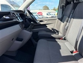 Cross wind assist, Dimmable illuminated instruments, Driver alert with Multi-function display plus, eCall emergency system, Electromechanical speed sensitive power steering, height and longitudinally adjustable steering column, Forward collision warning front assist with autonomous emergency braking, Mobile phone interface, Multi function display plus with black and white display, 2 USB interfaces type C in dashboard, 4 speakers with 2 tweeters and 2 woofers, Composition colour radio with 6.5"touchscreen, Digital radio reception (DAB+), Volkswagen app connect, 4 stages windshield wiper intermittent control for windshield wipers, Closing rear wing door with unlatching from the inside, Green tinted heat insulating glass in cab and passenger compartment, H7 twin halogen headlamps, Heat insulating windshield made of laminated glass, Left convex exterior mirror, Power adjustable and heated exterior mirrors, Rear wing doors without window apertures, Right convex exterior mirror, Separate Daytime running lights, Transporter nameplate on the rear fender, Unpainted radiator grille with 2 chrome trims, 3 spoke leather wrapped multi function steering wheel, Comfort headliner in cab, hardboard roof trim in passenger and load compartment, Dust/pollen filter, Folding grab handles on roof frame, Front and rear left without window closed side panel in load compartment, Front seats on the right in 1st row of seat, Glove compartment without illumination, High partition, Interior plastic loading edge protection, LED Interior lighting in load and passenger compartment, Rubber floor covering in cab, Standard lower part dashboard in palladium, Without breakaway interior rear view mirror, Without refrigerant, Without right side window apertures in passenger and load compartment, Non smoker pack - Transporter, 3 point height adjustable seat belts on outer seats cab with electric pretensioners, Driver and front passenger airbag with front passenger airbag deactivation, Single tone horn, Warning buzzer and light for driver and front passenger seat belt not fastened, Without child safety lock in passenger compartment, Electronic immobiliser, Wheel bolts without wheel locks, 16"chassis with 16"brake system, Diesel particulate filter, Electronic stability control, ABS, ASR with deactivation button, hill start assist and brake assist system, Standard anti drum measures, Start/stop system with regenerative breaking, Low rolling resistance tyres - 205/65 R16 C 107/105T,