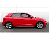 10.25"Digital instrument cluster display screen, Audi connect safety emergency and service including E-call, Audi drive select, Audi smartphone interface, Automatic start/stop system, Bluetooth interface, Driver's information system, Electromechanical power steering, Lane departure warning system, Service interval indicator, Speed limiter, Voice control system, Washer fluid level indicator, Sports suspension, 1 x SDXC card reader, 1 x USB type C and 1 USB type A charging points, Audi music interface, Bluetooth audio streaming, DAB Digital radio, MMI radio plus with 8.8"colour MMI display screen and MMI touch, Auto dimming rear view mirror, Body colour side sill mouldings, Body coloured bumpers, Body coloured door mirrors, Door sills with aluminium inlays and S Line logo, Electric front and rear windows, Front side air inlets in grained matt black and C frame in titanium black, Heat insulating glass windscreen and side windows, Heated rear windscreen, LED headlights with LED rear lights + dynamic rear indicators, Matt aluminium silver tailpipe trim, Matt black radiator grille frame, Matt platinum grey in front spoiler clip and rear diffuser clip, Rain and light sensors, Rear fog lights, Rear wiper, S line badges on front wings, S line exterior bumpers, S line roof spoiler, Side air inlet frames titanium black, Side front spoiler lips in grained matt black, 12V socket in centre console with two cup holders, 3 rear seats, Black cloth headlining, Driver and passenger seat with manual height adjust with forward and backwards adjustment, Front and rear black floor mats with contrast stitching in fine silver, Front head restraints, Height and reach adjustable steering wheel, ISOFIX child seat mounting in front passenger and rear outer seats, Leather gear knob with aluminium trim, Leatherette handbrake grip, Luggage compartment light with front and rear reading lights, Lumbar adjustment for front seats, Rear head restraints, Split folding rear seats, Stainless steel pedals, 3x3 point rear seatbelts, Audi pre-sense front with pedestrain and cyclist recognition, Brake assist function, Driver and front passenger airbag with front side and head airbags, Electronic Stability Control including ABS, EBD, ASR and EDL, Front and rear seatbelt reminder, Front passenger airbag deactivation switch, Hill hold assist, Seatbelt height adjustment for front seats, Seatbelt monitoring, Tyre pressure warning light, Warning triangle and first aid kit, Anti theft alarm, Anti theft wheel bolts and loose wheel warning, Immobiliser, Remote central locking with 2 remote folding keys, Aluminium trim for control switches, air vents and digital instrument cluster, Silver grey inlays polygon structure in diamond paint finish, Structured grey accent areas including air vents, door handle recesses and centre console in quartz paint finish,