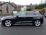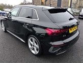 Accent surfaces in the dashboard and centre console in platinum grey silk effect paint finish, Dark spectrum aluminium inlays, Aluminium interior elements pack - A3 Sportback, LED interior lighting pack - A3 Sportback, S line styling pack - A3 Sportback, Anti theft alarm, Anti-theft wheel bolts, Electronically operated child lock, Immobiliser, Remote control central locking, 2xUSB-C connection with data and charging functions, 6 passive loudspeakers, DAB Digital radio, 3x3 point rear seat belts, Audi pre sense front, Driver and front passenger airbag with passenger airbag deactivation, Electronic Stabilisation Control (ESC) including ABS, ASR and EDL, First aid kit with warning triangle and 2 safety vests, Front side airbags with head airbags and interaction airbag, Pre-sense front with pedestrian and cyclist detection, Seatbelt monitoring, Tyre pressure loss indicator, 3rd brake light, Acoustic glass windscreen, Aluminium window trim, Auto dimming frameless rear view mirror, Electrically adjustable/heated/folding/dimming door mirrors with kerb view includes integrated LED indications + kerb view function for passenger side, Front electric windows, Illuminated aluminium inserts front door sills with S logo, LED daytime running lights, LED headlights with LED rear lights and dynamic rear indicators, Light and rain sensors, Privacy glass - dark tinted rear window, rear door and side windows, Rear electric windows, Rear side air outlets in grained matt black, Rear side wing doors, Rear wiper, S line bumpers, S roof spoiler, 12V socket and storage compartment in front centre console, 3 seat bench in 2nd row, 40/20/40 split folding rear seat bench with cupholder, Black cloth headlining, Dual zone electronic climate control, Front and rear centre armrest in leather, Front and rear headrests, Front/rear floor mats, Height and reach adjustable steering wheel, Illuminated vanity mirror, Interior lighting - glove compartment light and right hand side, Luggage compartment floor covering, Manual boot compartment lid, Manually adjustable front seats, Seat side bolsters, Single front passenger seat, Stainless steel pedals and front footrest in black, Twin leather upholstery with front sports seats S embossed logo, Audi drive select (Auto, Comfort, Dynamic, Efficiency and Individual), Audi smartphone interface, Audi Virtual Cockpit - 10.25"digital and colour instrument cluster, Automatic start/stop system with recuperation, Bluetooth interface, Collision avoidance assistant, Cruise control, e-Call (emergency call), Electromechanical power speed sensitive steering, Lane departure warning system, MMI Navigation Plus with high resolution 10.1"colour touch screen display, Rear parking sensors, Service indicator, Trip computer, Voice control system with natural language interaction,
