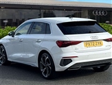 Audi drive select (Auto, Comfort, Dynamic and Individual), Audi smartphone interface, Audi Virtual Cockpit - 10.25"digital and colour instrument cluster, Automatic start/stop system with recuperation, Bluetooth interface, Collision avoidance assistant, Cruise control, e-Call (emergency call), Electromechanical power speed sensitive steering, Lane departure warning system, MMI Navigation Plus with high resolution 10.1"colour touch screen display, Rear parking sensors, Service indicator, Trip computer, Voice control system with natural language interaction, 2xUSB-C connection with data and charging functions, 6 passive loudspeakers, DAB Digital radio, 3rd brake light, Acoustic glass windscreen, Aluminium window trim, Auto dimming frameless rear view mirror, Electrically adjustable/heated/folding/auto dimming door mirrors with integrated LED indications + kerb view function for passenger side, Front electric windows, Illuminated aluminium inserts front door sills with S logo, LED daytime running lights, LED headlights with LED rear lights and dynamic rear indicators, Light and rain sensors, Privacy glass - dark tinted rear window, rear door and side windows, Rear electric windows, Rear side air outlets in grained matt black, Rear side wing doors, Rear wiper, S line bumpers, S roof spoiler, 12V socket and storage compartment in front centre console, 3 seat bench in 2nd row, 40/20/40 split folding rear seat bench with cupholder, Black cloth headlining, Dual zone electronic climate control, Front and rear centre armrest in leather, Front and rear headrests, Front/rear floor mats, Height and reach adjustable steering wheel, Illuminated vanity mirror, Interior lighting - glove compartment light and right hand side, Luggage compartment floor covering, Manual boot compartment lid, Manually adjustable front seats, Seat side bolsters, Single front passenger seat, Stainless steel pedals and front footrest in black, Twin leather upholstery with front sports seats S embossed logo, Aluminium interior elements pack - A3 Sportback, LED interior lighting pack - A3 Sportback, S line styling pack - A3 Sportback, 3x3 point rear seat belts, Audi pre sense front, Driver and front passenger airbag with passenger airbag deactivation, Electronic Stabilisation Control (ESC) including ABS, ASR and EDL, First aid kit with warning triangle and 2 safety vests, Front side airbags with head airbags and interaction airbag, Pre-sense front with pedestrian and cyclist detection, Seatbelt monitoring, Tyre pressure loss indicator, Anti theft alarm, Anti-theft wheel bolts, Electronically operated child lock, Immobiliser, Remote control central locking, Accent surfaces in the dashboard and centre console in platinum grey silk effect paint finish, Dark spectrum aluminium inlays,