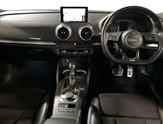 Audi connect, Audi drive select, Audi smartphone interface, Bluetooth interface, Colour driver's information system display, Electro-mechanical PAS, SD card based satellite navigation system, Service interval indicator, Voice control system, Diesel particulate filter, 2 USB ports, Audi music interface, Aux-in socket, CD player, DAB Digital radio, MMI radio plus with 7"colour MMI screen and MMI controller, Automatic lights and wipers, Black door mirrors, Black rear diffuser, Body colour roof spoiler, Chrome exhaust tailpipes, Electric operated/heated door mirrors, Front and rear electric windows, Heated rear window, Heated windscreen washer jets, LED daytime running lights, Privacy glass, S Line body styling, 3 adjustable rear headrests, 3 spoke flat bottom multi-function leather steering wheel including paddle shift, 4 lashing points to secure luggage, Adjustable front armrest, Black cloth headlining, Driver/passenger sunvisors, Dual zone electronic climate control, Front and rear interior lights with delay, Front sports seats, Front/rear floor mats, Height/depth adjustable steering column, Illuminated door sills, Illuminated glovebox, ISOFIX child seat preparation+airbag deactivation, Jack and tool kit, Stainless steel pedals, Storage compartment in centre console, Storage compartments in doors, Storage under driver's seat, Black styling pack - A3/S3, LED interior light pack - A3/RS3, Non smoking pack - A3, Storage and luggage pack - A3/RS3, 3 point seatbelts on all seats, ABS/EBD, ASR, Curtain airbags, Driver and passenger side airbags, Driver/Front Passenger airbags, Drivers knee airbag, EDL, Electromechanical parking brake, ESC - Electronic Stability Control + traction control, Front passenger airbag deactivation, Seatbelt warning, Tyre pressure warning, Warning triangle and first aid kit, Anti theft alarm, Anti-theft wheel bolts, Immobiliser, Remote control central locking, Aluminium air vent surrounds, Aluminium trim elements, Matt brushed aluminium inlays, 18"10 spoke design alloy wheels in matt titanium look with diamond cut finish,