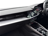 Audi drive select (Auto, Comfort, Dynamic, Efficiency and Individual), Audi smartphone interface, Audi Virtual Cockpit - 10.25"digital and colour instrument cluster, Automatic start/stop system with recuperation, Bluetooth interface, Collision avoidance assistant, e-Call (emergency call), Electromechanical power speed sensitive steering, Lane departure warning system, MMI Navigation Plus with high resolution 10.1"colour touch screen display, Service indicator, Trip computer, Voice control system with natural language interaction, Sports suspension, 2xUSB-C connection with data and charging functions, 6 passive loudspeakers, DAB Digital radio, 3rd brake light, Acoustic glass windscreen, Aluminium window trim, Auto dimming frameless rear view mirror, Body colour exterior mirrors, Electrically adjustable/heated/folding/auto dimming door mirrors with integrated LED indications + kerb view function for passenger side, Front electric windows, Illuminated aluminium inserts front door sills with S logo, LED daytime running lights, LED headlights with LED rear lights and dynamic rear indicators, Light and rain sensors, Privacy glass - dark tinted rear window, rear door and side windows, Rear electric windows, Rear side air outlets in grained matt black, Rear side wing doors, Rear wiper, S line bumpers, S roof spoiler, 12V socket and storage compartment in front centre console, 3 seat bench in 2nd row, 3 spoke leather multifunction steering wheel with paddle shift, 4 way electrically adjustable lumbar support for driver and front passenger, 60/40 split folding rear seat bench, Black cloth headlining, Dual zone electronic climate control, Front and rear centre armrest in leather, Front and rear headrests, Front/rear floor mats, Height and reach adjustable steering wheel, Interior lighting - glove compartment light and right hand side, Luggage compartment floor covering, Manual boot compartment lid, Manually adjustable front seats, Seat side bolsters, Single front passenger seat, Stainless steel pedals and front footrest in black, Twin leather upholstery with front sports seats S embossed logo, Aluminium interior elements pack - A3 Sportback, LED interior lighting pack - A3 Sportback, S line styling pack - A3 Sportback, 3x3 point rear seat belts, Driver and front passenger airbag with passenger airbag deactivation, Electronic Stabilisation Control (ESC) including ABS, ASR and EDL, First aid kit with warning triangle and 2 safety vests, Front side airbags with head airbags and interaction airbag, Pre-sense front with pedestrian and cyclist detection, Seatbelt monitoring, Tyre pressure loss indicator, Anti theft alarm, Anti-theft wheel bolts, Electronically operated child lock, Immobiliser, Remote control central locking, Dark spectrum aluminium inlays, accent surfaces in the dashboard and centre console in platinum grey silk effect paint finish,