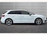 Audi drive select, Colour driver's information system display, Low washer fluid indicator, Service interval indicator, Voice control system, Audi music interface, DAB Digital radio, Aluminium side window trim, Body colour bumpers, Body colour door mirrors with integral indicators, Body colour roof spoiler, Chrome exhaust tailpipes, Daytime running lights, Front and rear electric windows, Front fog lights, Headlight washers, Heated rear window, Heated windscreen washer jets, High gloss black fog light surround, High gloss black front grille, Rear wiper, S Line body styling, Twin exhaust tailpipe, 3 adjustable rear headrests, 3 spoke flat bottomed S Line multifunction steering wheel, 4 lashing points to secure luggage, 60/40 split folding rear seat, Adjustable front armrest, Aluminium door sill trims, Black cloth headlining, Coat hooks on both sides, Cup holders, Door sill trims with S line logo, Driver seat undertray, Driver/passenger sunvisors, Dual zone electronic climate control, Front and rear interior lights with delay, Front/rear floor mats, Height adjustable front seats, Height/depth adjustable steering column, Illuminated glovebox, Illuminated luggage compartment, ISOFIX child seat preparation+airbag deactivation, Jack and tool kit, Perforated leather gearknob, Removable rear parcel shelf, Storage compartment in centre console, Storage compartments in doors, Variable boot floor, Storage and luggage pack - A3/RS3, 3 point seatbelts on all seats, ABS/EBD, Active bonnet, Active front headrests, ASR, Curtain airbags, Driver and passenger side airbags, Driver/Front Passenger airbags, Drivers knee airbag, EDL, Electromechanical parking brake, ESC - Electronic Stability Control + traction control, Front passenger airbag deactivation, Manual rear child locks, Seatbelt warning, Tyre pressure monitor, Warning triangle and first aid kit, Anti-theft wheel bolts, Remote control central locking, Thatcham category 1 alarm + immobiliser, Aluminium air vent surrounds, Aluminium trim elements, Matt brushed aluminium inlays, Space saver spare wheel,