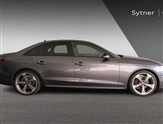 Audi connect safety and service (e-call), Audi connect with Amazon Alexa Integration, Audi drive select, Audi parking system plus with front and rear sensors, Audi smartphone interface, Audi virtual cockpit, Automatic start-stop system with coasting functionality and efficiency programme, Bluetooth interface, Electric boot lid release, Electromechanical power steering, Email, calendar and text messages displayed via MMI, MMI Navigation plus with MMI touch includes 10.1"high resolution colour MMI display, 3D map, Rear view camera, Voice control system, Sports suspension lowered by 23mm, 2 USB charging ports, 8 passive loudspeakers, DAB digital radio reception, Auto dimming rear view mirror, Black Audi rings and black badging (model name in black badging, no engine badging), Black audi rings decal above rear sills, Body colour door handles, Body colour front spoiler lip, Body colour side sill trim, Electrically folding auto dimming/adjustable/heated door mirrors with LED side indicators and kerb view function for passenger side, Front and rear bumpers with side skirts, Front wing badges, Grained matt black side air inlets with matt aluminium silver inlay, High beam assistant, High gloss black B pillar trims and triangular rear door trim, LED headlights with LED rear lights + dynamic rear indicators + headlight adjustment and high beam, turning light + LED daytime running lights, Matt aluminium silver tailpipe trim, Privacy glass, Rain and light sensors, Rear diffuser in matt titanium black with trim strip in matt aluminium silver, Windscreen with acoustic glazing, 4 way electric lumbar support for driver and front passenger, 40/20/40 split folding 3 rear seat bench in 3 parts with rear centre armrest, Black cloth headlining, Black perforated leather gearknob, Contrast stitching on seats, steering wheel and gear lever gaiter, Deluxe 3 zone electronic climate control, Door sill trims with aluminium inlay, Front and rear head restraints, Front centre armrest, Heated front seats, Illuminated door sill trims with S logo, ISOFIX child seat mounting and top tether, Manual seat adjustment, Stainless steel pedals and foot rest, Black styling pack - A4 Saloon, LED Interior light pack - A4/S4, 3 rear seatbelts, 6 airbags - Driver, front passenger, curtain and side windows, Electronic Stabilisation Control (ESC) including ABS, ASR and EDL, Hill hold assist, Multi collision brake assist, Pop-up bonnet for pedestrian protection, Pre sense city, Seatbelt monitoring, Warning triangle and first aid kit, Anti theft alarm, Anti theft wheel bolts, Keyless Go, Piano black finish inlay, Tool kit, Tyre repair kit,