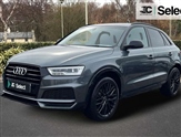 6.5"colour display screen, Audi drive select, Cruise control, Electro-mechanical PAS, Low washer fluid indicator, MMI - Multi Media Interface control system, On board computer, Remote electric boot opening/closing, Service interval indicator, Voice control system, Diesel particulate filter, Sports suspension, Audi music interface, BOSE sound system, DAB digital radio module, Acoustic windscreen, Aluminium window surround, Auto dimming rear view mirror, Black exhaust tailpipes, Black high gloss door mirrors, Black roof rails, Coming home function, Door mirror integrated indicators, Front and rear electric windows, Front fog lights, Front lip spoiler, Heated windscreen washer jets, High Gloss Black Contrast Bumpers, High Gloss Black rear spoiler, LED daytime running lights, LED headlights with headlight washers, LED rear lights, Light and rain sensor for auto activation of lights and windscreen wipers, Loading sill protector in stainless steel, Privacy glass, Rear diffuser with platinum insert, Rear wiper, S Line body styling, Sunband for windscreen, 12V socket in rear centre console, 3 spoke flat bottom multi-function perforated leather steering wheel with contrast stitching, Aluminium door sill trims, Aluminium gear knob, Black cloth headlining, Door sill trim strips, Dual zone climate control, Electric front lumbar adjustment, Front and rear headrests, Front and rear velour floor mats, Front centre armrest with storage compartment and angle adjustment, Front sports seats, Height/reach adjust steering wheel, ISOFIX on front passenger and rear outer seats, Jack and tool kit, Retractable luggage cover, Reversible boot floor, Split fold rear seat, Stainless steel pedals, Storage compartment and 12V socket, Under floor storage in luggage area, Audi Exclusive black styling pack - Q3, LED interior light pack - Q3, 3x3 point rear seatbelts, ABS+Electronic Brake force Distribution, Curtain airbags, Driver and passenger airbags, Driver and passenger side airbags, EDL + ASR, Electrically operated child locks on rear doors, Electromechanical parking brake, ESP, First aid kit, Front passenger airbag deactivation, Head airbags, Seatbelt warning light, Tyre pressure monitoring system, Warning triangle, Locking wheel bolts, Remote central locking, Thatcham category 1 alarm + immobiliser, Piano black finish inlay,