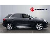 Audi connect safety and service (e-call), Audi drive select, Audi lane departure warning, Audi smartphone interface includes wireless Apple carplay/Android Auto, Audi Virtual Cockpit - 10.25"display, Bluetooth interface, Camera based traffic sign recognition, Cruise control + speed limiter, MMI Navigation Plus with high resolution 10.1 inch touchscreen colour display, Power operated tailgate, Progressive steering, Rear parking sensors, Service interval indicator, Start stop system with recuperation, Voice control system with natural language interaction, Sports suspension, 2 USB-C ports with charge and data functions, 6 passive loudspeakers, DAB digital radio module, Acoustic windscreen, Aluminium roof rails, Aluminium window trim, Auto dimming frameless rear view mirror, Body coloured bumpers, Electrically folding, adjustable and heated door mirrors with integrated LED side indicators and kerb view function for passenger side, Front and rear electric windows, Front fog lights, Front side air inlets in matt platinum grey, Front spoiler blade in matt platinum grey, Grille vertical bars in aluminium silver/Matt, High gloss black finish B and C pillars, LED headlights with LED daytime running lights and dynamic rear indicator, LED rear lights, Privacy glass dark tinted rear and rear-side windows (from B-pillar backwards), Rain and light sensors, Rear diffuser strip in matt titanium black, S line badges on front wings, S Line front and rear bumpers, Side skirt insert in matt Platinium grey, Silver chrome grille surround, Titanium black radiator grille, 12V socket in rear centre console, 40:20:40 folding with manual adjustment for 60:40 forwards/backwards position and backrest angle, Adjustable rear seat bench/backrest with centre armrest and cupholder, Black cloth headlining, Dual zone electronic climate control, Front and rear black floor mats with contrast stitching in rock grey, Front and rear headrests, Front and rear roof module including reading lights, Front centre armrest, Glove compartment lighting, Height and reach adjustable steering wheel, Illuminated door sill trims with S logo, ISOFIX child seat mounting for front passenger with airbag deactivation and outer rear seat including top tether attachment point for outer rear seats, Luggage compartment light, Manual front seats with height adjustment, Perforated leather gearknob, Stainless steel luggage compartment sill finisher, Stainless steel pedals, Non smoking pack - Q3, 3x3 point rear seatbelts, 6 airbags - Driver, front passenger, curtain and side windows, Electrically operated child locks on rear doors, Electromechanical parking brake, Electronic stabilisation control including ABS, ASR and EDL, Hill descent control, Hill hold assist, Pre sense basic, Seatbelt monitoring, Tyre pressure warning, Warning triangle and first aid kit, Anti theft alarm, Anti theft wheel bolts, Audi pre-sense front with pedestrain and cyclist recognition, Remote central locking, Dark matt brushed aluminium inlay, Leatherette door armrest, MMI touch colour display in glass look, black with surround in aluminium look,