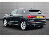 Amazon alexa Integration, Audi connect safety and service (e-call), Audi drive select, Audi lane departure warning, Audi Virtual Cockpit - 10.25"display, Bluetooth interface, Camera based traffic sign recognition, MMI Navigation Plus with high resolution 10.1 inch touchscreen colour display, Power operated tailgate, Progressive steering, Service interval indicator, Smartphone interface includes wireless Apple carplay/Android Auto, Start stop system with recuperation, Voice control system with natural language interaction, Sports suspension, 2 USB-C ports with charge and data functions, 6 passive loudspeakers, DAB digital radio module, Acoustic windscreen, Aluminium roof rails, Aluminium window trim, Auto dimming frameless rear view mirror, Body coloured bumpers, Electrically folding, adjustable and heated door mirrors with integrated LED side indicators and kerb view function for passenger side, Front and rear electric windows, Front fog lights, Front side air inlets in matt platinum grey, Front spoiler blade in matt platinum grey, Grille vertical bars in aluminium silver/Matt, High gloss black finish B and C pillars, LED headlights with LED daytime running lights and dynamic rear indicator, LED rear lights, Privacy glass dark tinted rear and rear-side windows (from B-pillar backwards), Rain and light sensors, Rear diffuser strip in matt titanium black, S line badges on front wings, S Line front and rear bumpers, Side skirt insert in matt Platinium grey, Silver chrome grille surround, Titanium black radiator grille, 12V socket in rear centre console, 40:20:40 folding with manual adjustment for 60:40 forwards/backwards position and backrest angle, Adjustable rear seat bench/backrest with centre armrest and cupholder, Black cloth headlining, Dual zone electronic climate control, Front and rear black floor mats with contrast stitching in rock grey, Front and rear headrests, Front and rear roof module including reading lights, Front centre armrest, Glove compartment lighting, Height and reach adjustable steering wheel, Illuminated door sill trims with S logo, ISOFIX child seat mounting for front passenger with airbag deactivation and outer rear seat including top tether attachment point for outer rear seats, Luggage compartment light, Manual front seats with height adjustment, Perforated leather gearknob, Stainless steel luggage compartment sill finisher, Stainless steel pedals, Non smoking pack - Q3, 3x3 point rear seatbelts, 6 airbags - Driver, front passenger, curtain and side windows, Audi pre-sense front with pedestrain and cyclist recognition, Electrically operated child locks on rear doors, Electromechanical parking brake, Electronic stabilisation control including ABS, ASR and EDL, Hill descent control, Hill hold assist, Pre sense basic, Seatbelt monitoring, Tyre pressure warning, Warning triangle and first aid kit, Anti theft alarm, Anti theft wheel bolts, Remote central locking, Dark matt brushed aluminium inlay, Detail dashboard around MMI touch colour display in glass look, black with surround in aluminium look, Leatherette door armrest,