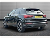 Amazon alexa Integration, Audi connect safety and service, Audi drive select, Audi lane departure warning, Audi Virtual Cockpit - 10.25"display, Bluetooth interface, Camera based traffic sign recognition, Distraction and Fatigue warning, Legal emergency call, MMI Navigation Plus with high resolution 10.1 inch touchscreen colour display, Power operated tailgate, Progressive steering, Service interval indicator, Smartphone interface includes wireless Apple carplay/Android Auto, Start stop system with recuperation, Voice control system with natural language interaction, Diesel particulate filter, Sports suspension, 2 USB-C ports with charge and data functions, 6 passive loudspeakers, DAB digital radio module, Acoustic windscreen, Audi Beam uses LEDs to project the Audi logo onto the ground as you exit your Q3, Auto dimming door mirrors, Auto dimming frameless rear view mirror, Black roof rails, Electrically folding, adjustable and heated door mirrors with integrated LED side indicators and kerb view function for passenger side, Front and rear electric windows, Front fog lights, Grille vertical bars in aluminium silver/Matt, High gloss black finish B and C pillars, LED Dynamic rear indicators, LED headlights with LED daytime running lights, LED rear lights, LED third brake light, Privacy glass dark tinted rear and rear-side windows (from B-pillar backwards), Rain and light sensors, Rear diffuser grille in grained matt black, Rear diffuser strip in matt anthracite black, Rear side wing doors, Rear wiper, S line bumpers in contrasting Manhattan grey, Variable front intermittent wipers, 12V socket in rear centre console, 3 seat bench in 2nd row, 40:20:40 folding with manual adjustment for 60:40 forwards/backwards position and backrest angle, Adjustable rear seat bench/backrest with centre armrest and cupholder, Black cloth headlining, Dual zone electronic climate control, Electric lumbar support, Front and rear black floor mats with contrast stitching in rock grey, Front and rear headrests, Front centre armrest, Height and reach adjustable steering wheel, Illuminated door sill trims with S logo, ISOFIX child seat mounting for front passenger with airbag deactivation and outer rear seat including top tether attachment point for outer rear seats, Manual front seats with height adjustment, Perforated leather gearknob, Single front passenger seat, Stainless steel luggage compartment sill finisher, Stainless steel pedals, Twin leather upholstery with front sport seats + S embossing, Black styling pack - Q3, Non smoking pack - Q3, 3x3 point rear seatbelts, 6 airbags - Driver, front passenger, curtain and side windows, Audi pre-sense front with pedestrain and cyclist recognition, Electrically operated child locks on rear doors, Electromechanical parking brake, Electronic stabilisation control including ABS, ASR and EDL, Front seatbelt reminder, Hill descent control, Hill hold assist, Pre sense basic, Seatbelt monitoring, Tyre pressure warning, Warning triangle and first aid kit, Anti theft wheel bolts, Immobiliser, Remote central locking, Thatcham approved category 1 anti theft alarm, Aluminium look interior elements, Detail dashboard around MMI touch colour display in glass look, black with surround in aluminium look, Leatherette door armrest, Piano black inlay,