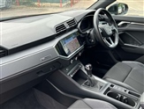 Aluminium look interior elements, Dark matt brushed aluminium inlay, Detail dashboard around MMI touch colour display in glass look, black with surround in aluminium look, Leatherette door armrest, Ambient lighting pack - Q3, Non smoking pack - Q3, Anti theft alarm, Anti theft wheel bolts, Immobiliser, Remote central locking, 2 USB-C ports with charge and data functions, 6 passive loudspeakers, DAB digital radio module, 3x3 point rear seatbelts, 6 airbags - Driver, front passenger, curtain and side windows, Audi pre-sense front with pedestrain and cyclist recognition, Electrically operated child locks on rear doors, Electromechanical parking brake, Electronic stabilisation control including ABS, ASR and EDL, Front seatbelt reminder, Hill descent control, Hill hold assist, Pre sense basic, Seatbelt monitoring, Tyre pressure warning, Warning triangle and first aid kit, Acoustic windscreen, Aluminium roof rails, Aluminium window trim, Anthracite black radiator grille, Auto dimming frameless rear view mirror, Body colour front spoiler blade, Body coloured bumpers, Electrically folding, adjustable and heated door mirrors with integrated LED side indicators and kerb view function for passenger side, Front and rear electric windows, Front fog lights, Front side air inlets in matt platinum grey, Grille vertical bars in aluminium silver/Matt, High gloss black finish B and C pillars, LED Dynamic rear indicators, LED headlights with LED daytime running lights, LED rear lights, LED third brake light, Privacy glass dark tinted rear and rear-side windows (from B-pillar backwards), Rain and light sensors, Rear diffuser grille in grained matt black, Rear diffuser strip in matt anthracite black, Rear side wing doors, Rear wiper, S line badges on front wings, S Line front and rear bumpers, Side skirt insert in matt Platinium grey, Variable front intermittent wipers, 12V socket in rear centre console, 3 seat bench in 2nd row, 3 spoke leather multifunction steering wheel features S badging and grips in perforated leather with contrast stitching, 40:20:40 folding with manual adjustment for 60:40 forwards/backwards position and backrest angle, Adjustable rear seat bench/backrest with centre armrest and cupholder, Black cloth headlining, Dual zone electronic climate control, Front and rear black floor mats with contrast stitching in rock grey, Front and rear headrests, Front and rear roof module including reading lights, Front centre armrest, Glove compartment lighting, Height and reach adjustable steering wheel, Illuminated door sill trims with S logo, ISOFIX child seat mounting for front passenger with airbag deactivation and outer rear seat including top tether attachment point for outer rear seats, Luggage compartment light, Manual front seats with height adjustment, Perforated leather gearknob, Single front passenger seat, Stainless steel luggage compartment sill finisher, Stainless steel pedals, Amazon alexa Integration, Audi drive select, Audi lane departure warning, Audi smartphone interface includes wireless Apple carplay/Android Auto, Audi Virtual Cockpit - 10.25"display, Bluetooth interface, Camera based traffic sign recognition, Legal emergency call, MMI Navigation Plus with high resolution 10.1 inch touchscreen colour display, Power operated tailgate, Progressive steering, Service interval indicator, Start stop system with recuperation, Voice control system with natural language interaction, Sports suspension,
