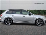 Audi connect safety and service (e-call), Audi drive select (Auto, Comfort, Dynamic, Efficiency, Individual, Off-road and All road), Audi phone box with wireless charging, Audi smartphone interface includes wireless Apple carplay/Android Auto, Camera based traffic sign recognition, Electromechanical steering, MMI navigation plus with MMI touch screens includes 10.1"and 8.6"screens with haptic feedback, Natural voice recognition, Parking system plus - front + rear sensors, Power assist steering, Power operated tailgate, Rear view camera, Start/stop system, 48V Mild hybrid technology, Adaptive air sports suspension, Quattro all wheel drive with self locking centre differential, Audi music interface - 2 USB ports with charger and data functions, Audi sound system, DAB digital radio module, Audi matrix LED headlights with dynamic front and rear indicators, Auto dimming frameless rear view mirror, Black roof rails, Bumpers in contrast paint scandium grey finish includes door trim and wheel arch trim strips, inlays in door strip contain quattro embossing, Electrically adj heated/folding + automatically dimming exterior mirrors with memory + automatic kerb side function for passenger side exterior mirror, Heat insulating glass in windshield, LED daytime running lights, LED rear tail lights, Privacy glass - dark tinted rear and rear side windows from B-pillar backwards, 3 spoke flat bottomed high multi-function leather sport steering wheel with gearshift paddles, 4 zone deluxe automatic climate control, 7 seat layout with ISOFIX points for the front passenger seat and rear passenger seat, Comfort front centre armrest, Electrically adjustable front sports seats with S embossed logo includes 4 way lumbar support and memory functionality for driver, Folding rear seats, Front head restraints, Front/rear floor mats, Heated front seats, LED interior ambient lighting, Luggage compartment sill protection in stainless steel, Rear head restraints, Stainless steel pedals, Tool kit, Titanium black styling pack - Q7, 3 point seatbelts on all rear seats, Audi pre sense front, Driver and front passenger, front side and curtain airbags, Electromechanical parking brake, Electronic Stabilisation Control (ESC) including ABS, ASR and EDL, Extended pedestrian protection measures, Hill hold assist, Seatbelt monitoring, Tyre pressure loss indicator, Warning triangle and first aid kit, Anti theft alarm, Anti-theft wheel bolts and wheel loosening detection, Keyless go with remote central locking, Polished oak trim with grey finished, Tyre repair kit,