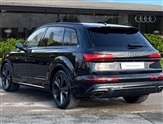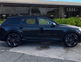 Audi connect safety and service (e-call), Audi connect with Amazon Alexa Integration, Audi drive select (Auto, Comfort, Dynamic, Efficiency, Individual, Off-road and All road), Audi phone box light with wireless charging, Audi virtual cockpit - 12.3"high-resolution LCD display with fully customisable instrument cluster, Bluetooth interface, Camera based traffic sign recognition, Electromechanical power steering, MMI navigation plus with MMI touch screens includes 10.1"and 8.6"screens with haptic feedback, Natural voice recognition, Operating buttons in Matte black, Parking system plus with 360 degree display (front, rear and side sensors) - acoustic and visual park assist system, Power operated tailgate, Rear view camera, Smartphone interface includes wireless Apple carplay/Android Auto, Start/stop system, 48V Mild hybrid technology, 85 litre fuel tank, Adaptive air sports suspension, Quattro all wheel drive with self locking centre differential, Audi music interface - front 2 USB-C ports with charger and data functions, Audi sound system with 6 channel amplifier, 180 watt amplifying capacity and 10 loudspeakers including subwoofer, DAB digital radio module, Audi Beam uses LEDs to project S emblem with red rhombus onto the ground when opening the side doors (front/rear), Auto dimming frameless rear view mirror, Black exhausts, Black roof rails, Electrically adj heated/folding + automatically dimming exterior mirrors with memory + automatic kerb side function for passenger side exterior mirror, Heat insulating glass in windshield, Integrated LED indications in door mirrors, LED 3rd brake light, LED daytime running lights, LED rear tail lights, Loading edge protection in stainless steel, Matrix LED headlights with dynamic front and rear indicators, Privacy glass - dark tinted rear and rear side windows from B-pillar backwards, Rear side wing doors, Rear wiper, 2 seat bench in 3rd row, 2 zone automatic climate control, 3 seat bench in 2nd row, 7 seat layout with ISOFIX points for the front passenger seat and rear passenger seat, Black cloth headlining, Comfort front centre armrest, Electric adjustable front seat with 4 way lumbar support, driver memory functionality, Folding rear seats, Front head restraints, Front/rear floor mats, Heated front seats, Illuminated door sill trims with S logo, ISOFIX child seat mounting for front passenger seat and 2 outer rear seats with top tether child seat mounting for all 3 rear seats, LED interior ambient lighting, Luggage compartment cover, Luggage compartment sill protection in stainless steel, Rear head restraints, Single front passenger seat, Stainless steel pedals, Sunvisors with illuminated vanity mirrors, Black styling pack plus - Q7, 3 point seatbelts on all rear seats, Audi pre sense front, Child locks on rear doors, Convenience key with safelock and gesture tailgate, Driver and front passenger, front side and curtain airbags, Electromechanical parking brake, Electronic Stabilisation Control (ESC) including ABS, ASR and EDL, Extended pedestrian protection measures, Hill hold assist, Seatbelt reminder, Tyre pressure loss indicator, Warning triangle and first aid kit, Anti theft alarm with tow away protection, Anti-theft wheel bolts and wheel loosening detection, Keyless Go, Remote central locking, Polished oak trim with grey finish inlay, Tool kit, Tyre repair kit,