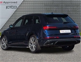 All wheel steering, Audi connect safety and service (e-call), Audi connect with Amazon Alexa Integration, Audi drive select (Auto, Comfort, Dynamic, Efficiency, Individual, Off-road and All road), Bluetooth interface, Camera based traffic sign recognition, Head up Display, MMI navigation plus with MMI touch screens includes 10.1"and 8.6"screens with haptic feedback, Natural voice recognition, Power door closure, Power operated tailgate, Smartphone interface includes wireless Apple carplay/Android Auto, Start/stop system, 48V Mild hybrid technology, Adaptive air sports suspension, Quattro all wheel drive with self locking centre differential, 2 USB-C ports with charging functionality in the rear, Audi music interface - front 2 USB-C ports with charger and data functions, DAB digital radio module, 3rd brake light, Audi Beam uses LEDs to project Audi logo onto the ground as you exit your Q7, Audi HD matrix LED headlights with Audi laser light + dynamic front and rear indicators, Auto dimming frameless rear view mirror, Black roof rails, Bumpers in contrast paint scandium grey finish includes door trim and wheel arch trim strips, inlays in door strip contain quattro embossing, Electric panoramic glass sunroof, Electrically adj heated/folding + automatically dimming exterior mirrors with memory + automatic kerb side function for passenger side exterior mirror, Gloss black finish for exterior Audi rings and Q7 logos without engine badging, Headlight washers, Heat insulating glass in windshield, Integrated LED indications in door mirrors, LED daytime running lights, LED rear tail lights, Privacy glass - dark tinted rear and rear side windows from B-pillar backwards, Rear side wing doors, Rear wiper, Side running boards, 2 seat bench in 3rd row, 3 seat bench in 2nd row, 3 spoke heated leather multi-function steering wheel including paddle shift, 4 zone deluxe automatic climate control, 7 seat layout with ISOFIX points for the front passenger seat and rear passenger seat, Black Alcantara headlining, Comfort front centre armrest, Double sun visors with illuminated vanity mirrors, Electric adjustable front seats/backrest bolsters, lumbar support, memory functionality, Folding rear seats, Front head restraints, Front/rear floor mats, Heated front and outer rear seats for second row, Illuminated door sill trims with S logo, Manual sunblind for the rear side windows and manual sunblind for the rear window, Rear head restraints, Seat ventilation and massage function in the front, Single front passenger seat, Stainless steel pedals, City assist pack - Q7, Comfort and sound pack with Bang + Olufsen premium sound system - Q7, Extended leather pack - Q7, Titanium black styling pack - Q7/SQ7, Tour pack with Adaptive cruise assist - Q7, 3 point seatbelts on all rear seats, Audi pre sense front, Child locks on rear doors, Driver and front passenger, front side and curtain airbags, Electromechanical parking brake, Electronic Stabilisation Control (ESC) including ABS, ASR and EDL, Extended pedestrian protection measures, Hill hold assist, Seatbelt monitoring, Tyre pressure loss indicator, Warning triangle and first aid kit, Anti theft alarm, Anti-theft wheel bolts and wheel loosening detection, Remote central locking, Polished oak trim with grey finish inlay, Tool kit, Tyre repair kit,