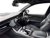 10.1"and 8.6"Dual colour touchscreens, All wheel steering, Audi connect safety and service (e-call), Audi drive select, Audi phone box with wireless charging, Audi smartphone interface with wireless Apple CarPlay, Audi virtual cockpit plus, Automatic start/stop system, Electro-mechanical PAS, Head up Display, Low washer fluid indicator, MMI - Multi Media Interface control system, MMI navigation plus with MMI touch, Natural voice recognition, On board computer, Operating buttons in black, glass look with haptic feedback, Power door closure, Power operated tailgate, Service interval indicator, 48V Mild hybrid technology, Adaptive sport air suspension, Diesel particulate filter, Quattro all wheel drive with self locking centre differential, Audi music interface with 2 USB ports with charge and data functions, Audi music interface with 2 USB ports with charge and data functions in the rear, Aux-in socket, DAB Digital radio, Acoustic windscreen, Adaptive windscreen wipers with integrated washer jets, Audi Beam uses LEDs to project Vorsprung logo, Audi HD Matrix LED headlights with dynamic front and rear indicators, Auto dimming frameless rear view mirror, Coming/leaving home lighting function, Electric front+rear windows, Electric panoramic glass sunroof, Electrically adjustable/heated/folding/auto dimming door mirrors with integrated LED indications + kerb view function for passenger side, Headlight washers, Heat insulating glass in windshield, LED signature daytime running lights, Platinum grey front spoiler lip and diffuser insert with honeycomb grille in black, Privacy glass - dark tinted rear and rear side windows from B-pillar backwards, Rain and light sensors, Rear wiper, 3 spoke flat bottomed high multi-function leather sport steering wheel with gearshift paddles, 4 zone deluxe automatic climate control, 4-way lumbar support for front seats, 40:20:40 split folding rear bench seat, Black Alcantara headlining, Comfort front centre armrest, Double sun visor with illuminated vanity mirror on driver and passenger side extendable, Driver and front passenger seat memory function for electrically adjustable front seats, Electric adjustable steering column with memory functionality, Electric sunblind for the rear side windows and manual sunblind for the rear window, Front head restraints, Front/rear floor mats, Heated front and outer rear seats, ISOFIX child seat mounting for front passenger seat and 2 outer rear seats with top tether child seat mounting for all 3 rear seats, Luggage compartment sill protection in stainless steel, Massage and ventilation function for front seats, Rear centre armrest with 2 cupholders, Rear headrests, Rear seat bench plus, Stainless steel pedals, Valcona leather upholstery + super sports seats with S embossed logo, City assist pack - Q8, Comfort and sound pack - SQ8, Extended leather pack - Q8, Titanium Black Styling Pack - Q8, Tour pack - Q8, 3 point seatbelts on all seats, Audi pre sense front, Driver and front passenger, front side and curtain airbags, Electromechanical parking brake, Electronic Stability Control (ESC) including ABS, ASR and EDL, Front passenger airbag deactivation, Hill descent control, Hill hold assist, Predictive pedestrian protection, Seatbelt monitoring, Traction control, Tyre pressure loss indicator, Warning triangle and first aid kit, Anti theft alarm with tow away protection, Anti-theft wheel bolts and wheel loosening detection, Immobiliser, Keyless go with remote central locking, Polished oak trim with grey finish inlay, Tool kit, Tyre repair kit,