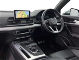 Audi connect, Audi drive select, Audi smartphone interface, Driver information centre with colour display in instrument panel, MMI Navigation plus, Power tailgate, Remote electric boot opening/closing, Service interval indicator, Voice control system, 2 USB ports, 2x SD card slot, Audi sound system, Auxiliary input socket, CD player, DAB Digital radio, MMI radio plus with 7"colour MMI screen and MMI controller, Acoustic windscreen, Aluminium roof rails, Aluminium sill plates, Auto dimming rear view mirror, Black high gloss front air inlet in matt aluminium effect, Body colour bumpers, Body colour door mirrors, Body colour rear diffuser insert, Chrome exhaust tailpipe, Electric headlight adjustment, Electrically adjustable and heated door mirrors, Front and rear electric windows, Front fog lights, Headlight range control, Headlight washers, High beam assistant, Honeycomb side air inlet in titan black, Light and rain sensor for auto activation of lights and windscreen wipers, Loading sill protector in stainless steel, Privacy glass with front acoustic glazing, Rear diffuser strip in matt aluminium silver, Rear spoiler, Rear wiper, S Line side skirts, Selenite silver underbody guard, Twilight grey matt radiator grille with matt aluminium horizontal chrome struts, 3 rear headrests, 3 zone climate control, 4 way electric lumbar support for driver and front passenger, 40:20:40 split folding rear bench seat, Black cloth headlining, Fine Nappa leather upholstery, Front centre armrest with 12v socket, Front sports seats, Front/rear floor mats, Height adjustable driver's seat, Height adjustable front head restraints, Illuminated door sills, Isofix front passenger and rear seat preparation, Jack and tool kit, Load compartment cover, Luggage compartment carpet, Matt selenite silver door inserts, Perforated leather gearknob, Reach + rake adjustable steering column, Rear seat bench plus with through load+rear centre armrest+cupholders, Removable luggage compartment floor, Removable net partition, Roller blind loadspace cover, Stainless steel pedals, Sunvisors with vanity mirrors, Extended interior upholstery pack - Q5, Non Smokers pack, 3 point seatbelts on all seats, ABS, Curtain airbags, Driver and passenger airbags, Driver and passenger side airbags, Electromechanical parking brake, ESC with ASR, ESP, First aid kit, Front passenger airbag deactivation, Hill descent control, Seat belt force limiter, Seatbelt warning lamp, Traction control, Tyre pressure monitor, Warning triangle, Keyless Go access/ignition system, Locking wheel bolts, Remote central locking, Thatcham category 1 alarm + immobiliser, Fine Nappa leather with diamond pattern stitching,