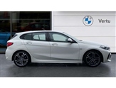 Contrast stitching on instrument panel, Additional interior lighting pack - 1 Series, Additional storage compartment pack with code 493 -1 series, BMW live cockpit professional pack- 1 Series, Connected pack professional - 1 Series, Interior lights pack - 1 Series, M Sport exterior styling aerodynamics pack - 1 Series, BMW mobility system, Electrically powered 12V compressor, Reduced rolling resistance tyres, Central locking switch for all doors, fuel filler cap and luggage compartment, Deadlocking function system to all doors, Drive away locking system on all doors and luggage compartment with de-activated in iDrive settings, Locking wheel bolts, Remote control with integrated key with High-gloss Black inlay and M designation and 1 button for open/ close lock, window, open luggage compartment, Start/stop button illuminated in centre console with keyless engine start and auto start stop deactivation button, Thatcham Cat.1 alarm and immobiliser, Wheel slip limitation close to the actuator (ARB), DAB Digital radio, Stereo speaker system with 2 mid range speakers in the front door trims and rear parcel shelf + 2 central bass speakers underneath the front seats, 2 tone horn, 3 point seatbelts on all seats, front pyrotechnic belt tensioners, stopper and belt force limiters, rear coded belt buckles, Airbags - Front driver/passenger, front and rear curtain head protection, front side, manual deactivation of front passenger airbag, Anti lock braking system (ABS) with brake assist, BMW emergency call, Brake drying, Braking readiness, Child proof locking system in rear door, City braking function, Comfort modes, Cornering brake control, Crash sensor activating central locking release, hazard warning lights, fuel cut off, interior lighting + activation of safety battery terminal clamp, Driver and front passenger seat belt security check, Dynamic stability control + (DSC+), Dynamic Traction Control - DTC, Electrically operated hand brake, Front and rear disc brakes, M Sport brakes with blue calipers, M Sport seatbelts, Seatbelt warning, Side impact protection, Tyre pressure monitoring system, Warning triangle and first aid kit, Auto dimming rear view mirror, Automatic headlight beam throw control, Automatic windscreen wipers and automatic headlight, BMW adaptive LED headlights, BMW individual high gloss shadow line with extended content, Body colour door handles, Body colour mirror caps, Body colour roof trims, Chrome 'M' logo side designation, Chrome exhaust twin tailpipes round 90mm in left, Chrome kidney grille frame with Satin Aluminium struts, Direction indicator side lights in exterior mirrors, Fading support, Folding side mirrors with auto dimming/folding wing mirrors with auto dimming, Follow me home headlights, Front and rear bumper system with replaceable deformation elements, Front and rear electric windows with open and close fingertip control, anti trap facility and comfort closing, Front door sill finishers in black plastic with M designation in metallic look, Green tinted heat protection glazing, Heated, electrically adjustable exterior mirror aspheric on driver side, convex on passenger side, High beam assistant, High gloss shadowline window frame, Recess cover mirror frames and B/C pillar embelisher trim, High level third brake light, Integrated front windscreen with washer jets, LED daytime running lights, LED eyebrow turn indicators, LED front fog lights, Lightweight engineering, M Sport spoiler, Matt black air guide grilles, Matt black wheel arch trim, Model designation on electric bootlid, Nearside reverse light in rear light cluster, Preparation for high beam assistant, Rear fog lights, Rear side wing doors, Rear window wiper, Shark fin antenna, Sun protection glass, Trailer stabilisation logic, Visible VIN plate, Welcome lighting, 12V power socket in front centre console with blanking plug, 3 rear seat head restraints, 3 seat bench in 2nd row, 3 spoke sports leather steering wheel in black leather with black stitch