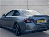 2 USB connections for charging and transferring data, Active guard plus, Attentiveness assist, Bluetooth with USB, BMW ConnectedDrive online services, BMW Intelligent Personal Assistant, BMW Live cockpit plus, BMW operating system 8 with variable, configurable widgets display information in real time, BMW Teleservices, Check Control warning system for monitoring of lights and door/luggage compartment open warning, Control Infotainment, Direct selection buttons, Drive off assistant, Eco pro mode, Electric power steering, eSim with 5G connectivity, Front and rear parking sensors, iDrive controller with turn and press function, Integrated owners handbook, Intelligent functions, Oil sensor for level and grade, Optimum shift indicator, Personal Profile, Smartphone integration, Touch operation on control display, Variable sport steering, Widescreen multi-media display, WiFi interface for wireless connection of mobile terminal devices, Aluminium lightweight construction, Balancer shaft, BMW TwinPower Turbo four-cylinder petrol engine, Double VANOS, Drive performance control with ECO PRO comfort + sport mode, Electronic differential lock, High precision injection, M sport suspension, Petrol Particulate Filter, Steptronic transmission with gearshift paddles, Twin scroll turbocharger with Valvetronic, DAB tuner, Acoustic windscreen wipers for reduced driving noise, Automatic windscreen wipers and automatic headlight, Body colour door handles flush with door surface, Body colour door mirrors, Body colour front and rear bumpers, Daytime running lights, Electric windows - front and rear, with open/close fingertip control and trap release, Exhaust tailpipes x2 - 90mm in left and right, Fading support, Front and rear bumper system with replaceable deformation elements, Front door sill finishers in black plastic with BMW designation, Front windscreen wipers with integrated washer jets, Green tinted heat protection glazing, High beam assistant, High gloss black sill, bumper trim sides and diffuser insert, High level third brake light, Indicators integrated int mirror housing, Interior rear-view mirror with automatic anti-dazzle function, LED registration plate light, LED technology rear tail lights, brake lights and turn indicators, Lightweight engineering, M high gloss shadowline, One piece kidney grille with hight gloss chrome surround, Rear boot, Rear fog lights, Reversing light in rear light cluster, Shark fin antenna, Single part LED rear lights with smoked glass components, Trailer stabilisation logic, Visible VIN plate, 12V power socket in front centre console with blanking plug, 2 cupholders in front centre console, 2 zone automatic air conditioning, Ambient lighting, Compartment in front of cupholder, Conditioned based service, English handbook, Folding rear seat head rests, Front and rear side armrests integrated into door trim, Front armrest, Front door pockets, Front head restraints, Heated front seats, Illuminated glove compartment with separate small compartment, M headliner Anthracite, M sport leather steering wheel, Manually adjustment steering wheel column, Rear seat backrest with manual 40:20:40 split folding, Rear seat centre foldable armrest with integrated cup holder, Single front passenger seat, Storage compartment between rear seats, Storage tray and compartment with cover in centre console, Sun visors with vanity mirrors and insert tab, Through loading system with 40/20/40 split folding 2 rear seat in 2nd row, Velour floor mats, Additional storage compartment pack without USB - 2 Series Coupe, Connected pack professional - 2 Series Coupe, 2 tone horn, Anti lock braking system (ABS) with cornering brake control, Automatic Stability Control (ASC), BMW emergency call, Brake drying, Child seat ISOFIX attachment for the two outer rear seats, Crash sensor activating of airbags, Unlocking doors, hazard warning lights, interior light, safety battery terminal, Deactivation of fuel pump in the event of a crash, Driver and front