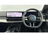 BMW ConnectedDrive online services, BMW Iconic sounds electric, BMW legal emergency call, BMW Teleservices, Brake pad wear indicator, Cruise control with brake assist, Driving Assistant Plus Preparation, Front collision warning with brake intervention, Lane departure warning with active return, Left turn warning with brake function, Multifunctional instrument panel, Oil sensor for level and grade, On board computer inc. average speed, fuel consumption, liquid crystal Info display, journey computer, outside temperature display, personal profile, On-board diagnosis - OBD, PAS, Powered by Operating System 7.0, Run flat indicator, Service interval indicator, Speed limit Info with manual speed limit assist, Stop/start button, 8 speed automatic steptronic transmission with gearshift paddles, AC charging cable professional (mode 3) for public charging, Expert mode, Launch control, DAB tuner, Acoustic glazing, Adaptive LED Headlights, Automatic cornering lights, Automatic windscreen wipers and automatic headlight, BMW selective beam, Body colour door handles, Body coloured bumpers, Dynamic brake lights with LED technology, Electric adjustable door mirrors, Electric front and rear windows with fingertip open/close + anti-trap facility and comfort closing function, Follow me home headlight function, Headlight elements in blue, Heated windscreen washer jets, LED daytime running lights, LED third brake light, Light colour close to that of ordinary daylight, M high gloss shadow line with extended contents - Radiator grille frame, struts and strip in rear light, M light shadowline - Dark design of selected elements of the headlight and rear lights, Optimum, homogeneous illumination of the road, Rear boot, Rear side wing doors, 2 zone automatic air conditioning, 3 seat bench in 2nd row, 3 spoke leather M steering wheel in BMW M specific design with M badge, Armrest - front and rear integrated door trim, centre console includes storage compartment, rear centre includes 2 cupholders, Child seat ISOFIX attachment with rear outer seats includes top tether, Electric adjustable front sports seats, Electric adjustable steering column, Electrically adjustable lumbar support for driver and front passenger, Heated driver and front passenger seats, M Anthracite headlining, M Sport pedal covers in stainless steel, Rear headrests, Single front passenger seat, Through loading system with 40/20/40 rear seat backrest split, Velour floormats, Wireless charging tray, Ambient lighting pack - 5 Series/I5, BMW Iconic glow kidney grille exterior package, Connected package professional - 5 Series/I5, Driving assistance pack - 5 Series/I5, Expanded exterior mirror package - 5 series/I5, M high gloss shadow line pack - 5 Series/ I5, M Sport exterior styling pack - 5 Series/I5, 3 rear three point seatbelts, Active protection, Airbag deployment is controlled with respect to the intensity and scope, Anti-lock braking system (ABS), Brake assist, Brake energy regeneration, Cornering brake control (CBC), Crash sensor activating central locking release, hazard warning lights, fuel cut off and interior lighting, Driver and front passenger airbags, Driver central airbag, Driver/front passenger side airbags, DSC - Dynamic Stability Control, Dynamic brake control, Dynamic Traction Control - DTC, Electromechanical parking brake with automatic drive away release and auto hold function, Electronic brake force distribution, Engine drag torque control, Front and rear brake discs with interior ventilation, Front and rear curtain airbags, Front head restraints with anti-whiplash, Head airbags for first and second row seats, Hill start assist, Locking of doors after driving off, M seat belts, Mechanical child proof lock on rear doors, PC iBrake PostCrash approach control warning with light braking function, Side impact protection, Trailer stability control, Two tone horn, Tyre pressure monitoring system, Warning triangle and first aid kit, Alarm system, Locking wheel bolts including