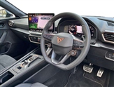 10.25"digital cockpit and configurable dashboard, Adaptive cruise control with follow-to-stop and speed limiter, Advanced driver alert system, Driving profile selection, Dynamic road sign display, Emergency steering support with turn assist, Forward collision warning with automatic braking, Front and rear parking sensors, Front cross traffic assist, Full link phone integration, Lane assist, Progressive steering, Rear view camera, RPM, trip computer, outside temp gauge, instrument light brightness, low fuel warning light, lights on reminder, gearshift indicator, Service interval indicator, Start/stop system with regenerative braking, Virtual pedal and electric tailgate, Voice control system, Wired Android Auto, Wireless apple carplay, Wireless phone charger, CUPRA sport suspension, Electronic locking differential and dynamic traction support, 2 front and 2 rear USB type C sockets, Media system with navigation, 12.9"touchscreen display, voice control, DAB, steering wheel mounted controls, Auto dimming rear view mirror, Body colour door handles, Body coloured bumpers, Dark grey wing mirror, Daytime running light with automatic headlight control and coming home feature, Door panel ambient lighting, Dynamic headlight range control, Electric front/rear windows, Electrically adjustable heated and folding door mirrors with memory function, Gloss black roof rails and window surrounds, High beam assist, LED 3rd brake light, LED front fog lamps with cornering function, LED Headlights, LED Taillights with dynamic indicator, Rain sensing wipers, Rear diffuser with black simulated exhaust pipes, Rear fog lights, Rear side wing doors, Rear wash/wipe, Tinted rear windows, Welcome lights (within exterior mirror housing), 12V socket, 2 front and 2 rear reading lights, 3 seat bench in 2nd row, 60/40 split rear bench seat with armrest and mechanical seat release, Black headlining, Black interior roof lining, Cupra sports pedals, Dust/pollen filter, Electrically adjustable front seats with lumbar support and memory function, Front and rear head restraints, Front centre armrest, Heated front seats, Heated supersports multifunction leather steering wheel with satellite buttons and gear shift paddles, Height/reach adjust steering wheel, Illuminated aluminium doorsteps, Illuminated interior front door sills, Illuminated sunvisor with mirror, Isofix, Leather dashboard, door insert and side trim panel, LED smart wraparound lighting, PVC/Dinamica microfiber upholstery + bucket seats, Satellite steering wheel, Single front passenger seat, Storage pockets on rear of front seats, Three zone climate control with control panel in rear, Variable luggage/load compartment floor, 3 point seatbelts on all rear seats, ABS, Brake control system - ESC and brake booster, Child proof door locks, Driver and front passenger airbags with front passenger airbag de-activation, Electronic parking brake, Front and rear disc brakes, Front side curtain airbags, Hill hold control, Public e-call, Seat belt reminder for front and rear seats, Tyre pressure monitoring system, Anti theft alarm system, KESSY Advanced - Keyless start, keyless entry with SAFELOCK, Locking wheel bolts, Warranty - 5 years/90,000 miles, Copper and aluminium interior detailing, 19"Sandstorm machined sport black and silver alloy wheels,