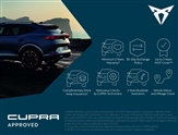 Digital cockpit and configurable dashboard, Driver alert system, Driving profile selection, E-call, Forward collision warning with automatic braking, Lane assist, Navigation system with 12'' Touchscreen Display, PAS, Predictive adaptive cruise control with speed limiter, Rear parking sensors, RPM, trip computer, outside temp gauge, instrument light brightness, low fuel warning light, lights on reminder, gearshift indicator, Service interval indicator, Start/stop system with regenerative braking, Voice control system, Wireless apple carplay, Wireless phone charger, Electronic locking differential and dynamic traction support, Standard suspension, 2 front and 2 rear USB type C sockets, Auxiliary input socket, DAB radio, Auto dimming rear view mirror, Body colour door handles, Body coloured bumpers, Dark grey wing mirror, Daytime running light with automatic headlight control and coming home feature, Dynamic headlight range control, Electric front/rear windows, Electrically adjustable, heated and folding door mirrors, Front fog lamps with cornering function, Gloss black roof rails and window surrounds, LED Headlights, LED Taillights with dynamic indicator, Rain sensing wipers, Rear diffuser with black simulated exhaust pipes, Rear side wing doors, Rear wash/wipe, Third brake light, Tinted rear windows, Welcome lights, 12v power supply in centre console, 12V socket, 12v socket in loadspace, 2 front and 2 rear reading lights, 230V socket, 3 seat bench in 2nd row, 60/40 split rear bench seat with armrest and mechanical seat release, Dust/pollen filter, Front and rear head restraints, Front centre armrest, Height/reach adjust steering wheel, Illuminated interior front door sills, Illuminated sunvisor with mirror, Interior ambient lighting, Isofix, Leather multi function steering wheel, Luggage tie-down hooks, Manually adjustable height and lumbar support for front seats, PVC/Cloth upholstery with copper stitching + Sport seats, Single front passenger seat, Three zone climate control with control panel in rear, Variable luggage/load compartment floor, Safety and driving pack (M) - Formentor, 3 point seatbelts on all rear seats, ABS, Brake control system - ESC and brake booster, Child proof door locks, Driver and front passenger airbags with front passenger airbag de-activation, Electronic parking brake, Front and rear disc brakes, Front side curtain airbags, Hill hold control, Seat belt reminder for front and rear seats, Tyre pressure monitoring system, Anti theft alarm system, Keyless entry and start system (KESSY), Locking wheel bolts, Copper and aluminium interior detailing,