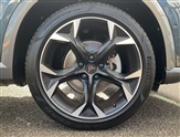 Digital cockpit and configurable dashboard, Driver alert system, Driving profile selection, Forward collision warning with automatic braking, Lane assist, Navigation system with 12'' Touchscreen Display, Park assist (inc front/rear parking sensors), PAS, Predictive adaptive cruise control with speed limiter, Rear view camera, RPM, trip computer, outside temp gauge, instrument light brightness, low fuel warning light, lights on reminder, gearshift indicator, Service interval indicator, Start/stop system with regenerative braking, Voice control system, Wired Android Auto, Wireless apple carplay, Wireless phone charger, 10 amp mode 2 charging cable, 16 amp mode 3 charging cable, 3.6 kw On-board charger, Electronic locking differential and dynamic traction support, Standard suspension, 2 front and 2 rear USB type C sockets, DAB radio, Auto dimming rear view mirror, Body colour door handles, Body coloured bumpers, Dark grey wing mirror, Daytime running light with automatic headlight control and coming home feature, Dynamic headlight range control, Electric front/rear windows, Electrically adjustable heated and folding door mirrors with memory function, Front fog lamps with cornering function, Gloss black roof rails and window surrounds, LED Headlights, LED Taillights with dynamic indicator, Rain sensing wipers, Rear diffuser with black simulated exhaust pipes, Rear side wing doors, Rear wash/wipe, Third brake light, Tinted rear windows, Welcome lights, 12V socket, 2 front and 2 rear reading lights, 3 seat bench in 2nd row, 60/40 split rear bench seat with armrest and mechanical seat release, Black headlining, Dust/pollen filter, Front and rear head restraints, Front centre armrest, Height/reach adjust steering wheel, Illuminated interior front door sills, Illuminated sunvisor with mirror, Isofix, Leather multi function heated steering wheel with gear shift paddles, Single front passenger seat, Three zone climate control with control panel in rear, Wraparound lighting, Genuine Nappa leather Pack - Cupra, 3 point seatbelts on all rear seats, ABS, Brake control system - ESC and brake booster, Child proof door locks, Driver and front passenger airbags with front passenger airbag de-activation, Electronic parking brake, Front and rear disc brakes, Front side curtain airbags, Hill hold control, Public e-call, Seat belt reminder for front and rear seats, Tyre pressure monitoring system, Anti theft alarm system, Keyless entry and start system (KESSY), Locking wheel bolts, Copper and aluminium interior detailing, 19"'Exclusive' machined sport matte black and silver alloy wheels, Tyre repair kit,