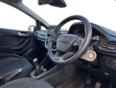 Bluetooth system, Electric power steering, Ford easy fuel, Trip computer, 2 USB ports, Auxiliary input socket, DAB Digital radio, Steering wheel mounted controls, Automatic headlights, Body colour bumpers, Body colour door handles, Body colour electric adjustable heated door mirrors with integral indicators, Body colour rear spoiler, Chrome beltline trim, Cornering front fog lights, Electric front windows/one touch facility, Halogen projector style headlights with static cornering lights + LED daytime running lights, Quickclear heated windscreen, Rear wiper, Tinted glass, Upper front grille chrome surround, 12V Accessory socket in centre console, 3 spoke leather trimmed steering wheel with audio control, 60/40 split folding rear seat, Adjustable head restraints, Boot carpet, Chrome inner door handles, Cloth upholstery, Footwell illumination, Front map reading lights, Front seat and rear pockets, Height adjustable driver's seat, Illuminated glovebox, Leather gear knob, Leather trimmed handbrake handle, Load area light, Luxury woven headliner, Manual air conditioning, Overhead console with sunglasses holder, Pollen filter, Rake/reach adjustable steering wheel, Rear centre head restraint, NCAP Pack - Fiesta, 3 point seatbelts on all rear seats, ABS+EBA, Curtain airbags, Driver and passenger airbags, Drivers knee airbag, Electronic stability control with hill start assist, Front passenger airbag deactivation, Front side airbags, Seatbelt warning, Tyre pressure monitoring system, MyKey system, Remote central locking & engine immobiliser, Thatcham Cat.1 alarm,