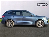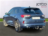 Driver impairment monitor, Ford easy fuel, Ford SYNC 3 with 8"colour touchscreen, App Link, andriod auto/apple carPlay and navigation with Ford pass connect, Front and rear parking sensors, Intelligent speed assist, Lane keeping aid with lane departure warning, Mobile phone wireless charging pad, Power assist steering, Selectable drive modes, Auto dimming rear view mirror, Auto headlamps with high and low beam, Auto wipers, Black roof rails, Front LED fog lights with cornering function, Full LED headlamps, Large rear spoiler, LED daytime running lights, LED rear lights, Power folding heated door mirrors with puddle lights, Power front/rear windows with global close, Privacy glass, Quickclear heated windscreen, ST Line body styling kit with unique front and rear fascia and bumper, rear painted diffuser, front painted skid plates, dark mesh upper grille, ST Line front scuff plates, Twin exhausts, 2nd row sliding seats, 8 way manual passenger seat including lumbar support and height adjust, Alloy pedals, Ambient lighting, Centre console with electronic parking brake, Dark headlining and pillars, Dual electronic automatic temperature control, Flat bottomed leather steering wheel in sensico with red stitching, Front and rear head restraints, Rear charging point, Sensico partial premium leather upholstery, Sports seats, ST Line front and rear floor mats, Steering wheel mounted paddle shift, B&O with large instrument cluster pack - Kuga, 3x3 point rear seatbelts, Airbags - front driver/passenger, front and rear curtain, Drivers knee airbag, Electronic stability control (ESC) and ABS, Ford MyKey Gen 2 safety system, Post collision braking, Powered child proof rear door locks, Pre collision assist with autonomous emergency braking, Red brake calipers, Tyre pressure monitoring system, Engine immobiliser, Keyless entry, Keyless start with 'Ford Power' starter button, Locking wheel nuts, Remote powered central double locking doors, Thatcham category 1 alarm,