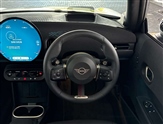 Central toggle bar, Circular OLED Screen, Compatible mobile phone bluetooth with audio streaming, Cruise control, Digital instrument cluster, Electro-mechanical speed dependant steering assistance, Emergency call service, MINI Experience Modes, Mini navigation system, On board computer, Service interval indicator, Tailgate, 7 speed steptronic transmission with double clutch, Adaptive suspension, DAB Digital radio, Personal eSim, Auto headlights, Electric adjustable heated door mirrors, Electric front windows, Front and rear apron, Heated rear window, Heated windscreen washer jets, High gloss black wheel arches, High gloss hexagonal patterned grille surround, JCW body kit, LED 3rd brake light, LED daytime running lights, LED Headlights, LED indicator lights, LED rear lights, Rain sensor window wipers, Rear fog lights, Rear roof spoiler with airblades, Rear window wiper, 2 seat bench in second row, 2 zone automatic air conditioning, 60/40 rear seat bench, Ambient lighting, Black lower band in high gloss, Cupholders, Dark headliner, Front and rear head restraints, Front compact armrest, Front floor mats, Heated steering wheel, Height adjustable passenger seat, Lidded storage box in Black/Red knit, Luggage compartment lighting, Partially perforated vescin steering wheel with red accent, black/red decorative strap, Single front passenger seat, Steering wheel paddle shift, Sunvisors with vanity mirrors, Vescin/Cord combination JCW upholstery includes dash knit in black with red accents, Driving assistant pack - Cooper Hatchback, Park assistant pack - Cooper Hatchback, 3 point seatbelts on all four seats, 6 Airbags - front, side, head and seat belt tensioners, Anti-lock braking system (ABS), Brake caliper in Black with JCW badge, DSC - Dynamic Stability Control, Electronic parking brake, Front and rear disc brakes, Front ISOFIX (iSize), Front passenger airbag deactivation, JCW Sport Brakes, Traction control, Tyre pressure monitoring system, Alarm, Immobiliser, Remote central locking, Black/Red decorative dash strap, Tyre repair kit,