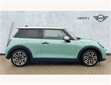 Central toggle bar, Circular OLED Screen, Compatible mobile phone bluetooth with audio streaming, Cruise control, Digital instrument cluster, Electro-mechanical speed dependant steering assistance, Emergency call service, MINI Experience Modes, Mini navigation system, On board computer, Service interval indicator, 7 speed steptronic transmission with double clutch, DAB Digital radio, Personal eSim, Adaptable light signatures, Auto headlights, Black grille surround, Electric adjustable heated door mirrors, Electric front windows, Heated rear window, Heated windscreen washer jets, LED daytime running lights, LED indicator lights, LED rear lights, Rain sensor window wipers, Rear fog lights, Rear window wiper, 2 seat bench in second row, 2 zone automatic air conditioning, 60/40 rear seat bench, Ambient lighting, Cupholders, Floor mats, Front and rear head restraints, Front compact armrest, Heated steering wheel, Height adjustable passenger seat, Light headliner, Luggage compartment lighting, Single front passenger seat, Sport Vescin Steering Wheel black with vibrant silver accents, Sunvisors with vanity mirrors, Vescin/Cloth upholstery, Driving assistant pack - Cooper Hatchback, Level 1 pack - Mini Hatchback, Park assistant pack - Cooper Hatchback, 3 point seatbelts on all four seats, 6 Airbags - front, side, head and seat belt tensioners, Acoustic pedestrian protection, Anti-lock braking system (ABS), DSC - Dynamic Stability Control, Electronic parking brake, Front and rear disc brakes, Front ISOFIX (iSize), Front passenger airbag deactivation, Traction control, Tyre pressure monitoring system, Alarm, Immobiliser, Remote central locking, Black/Blue dashboard knit, Tyre repair kit,